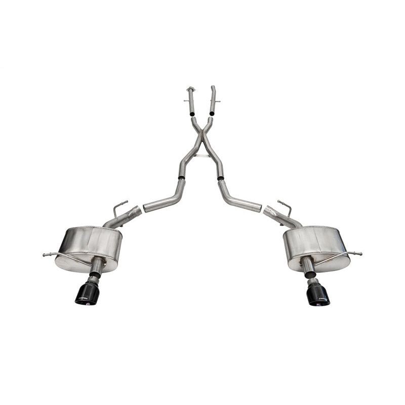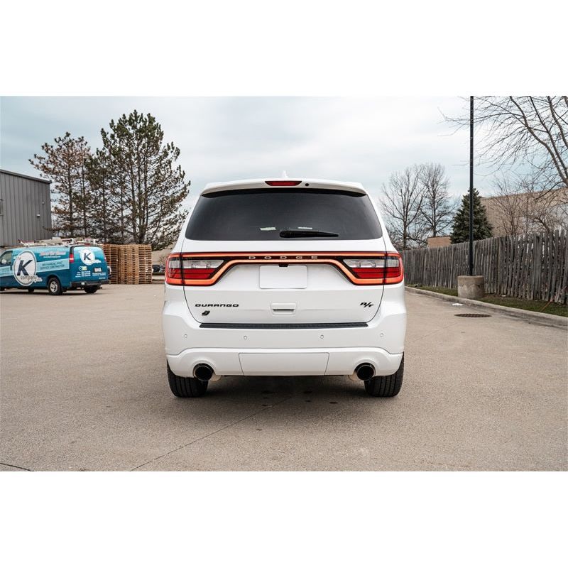 CORSA's 2011+ Dodge Durango Xtreme dual rear exit cat-back exhaust system has arrived! Custom tuned for the Durango 5.7L V8 engine to deliver intoxicating exhaust notes upon cold start and under heavy acceleration, this cat-back exhaust system unleashes the Hemi V8. The CORSA Xtreme dual rear exit exhaust system is engineered to out-perform in every way, outflowing the stock system by up to 51% , weighing 21lbs less than stock and delivering 20 decibels more volume. This cat-back is Xtreme as it gets and is designed purely to make the Hemi engine scream. The dual rear exit exhaust system features 304 stainless steel construction capable of withstanding a lifetime of use and abuse. Each system features CORSA's iconic Pro Series(R) dual wall, 304 stainless steel exhaust tips available in polished or black PVD finish. CORSA exhaust systems are proudly made in the USA and backed by a Lifetime Warranty.