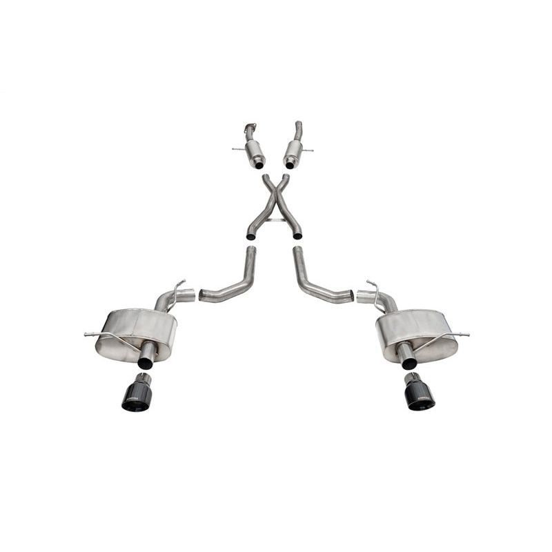 CORSA Performance's 2018+ Dodge Durango SRT Exhaust Offering Has Arrived! The Dodge Durango SRT catback exhaust assortment is available in both Sport and Xtreme sound levels allowing the driver to tailor the exhaust system to their exact sound profile. Made from 2.75 in. 304 stainless steel construction and featuring CORSA's Best-in-Class No Drone RSC(R) Technology, this is the ultimate Durango SRT exhaust system. CORSA's Sport sound level is 7 decibels louder than the stock exhaust system and offers an aggressive cold start, moderately aggressive exhaust note under acceleration while maintaining stock levels of in-cabin volume. CORSA's Xtreme system is 15 decibels louder than the stock system and noticeably more aggressive than the Sport system on both cold start and during acceleration while only inducing slightly more in-cabin volume. All exhaust systems come with dual wall stainless steel exhaust tips and come available in both polished and black PVD coating. CORSA Performance exhaust systems are made possible through a 25+ year commitment to perfecting the Science of Sound© and are proudly made in the USA and backed by a Limited Lifetime Warranty.