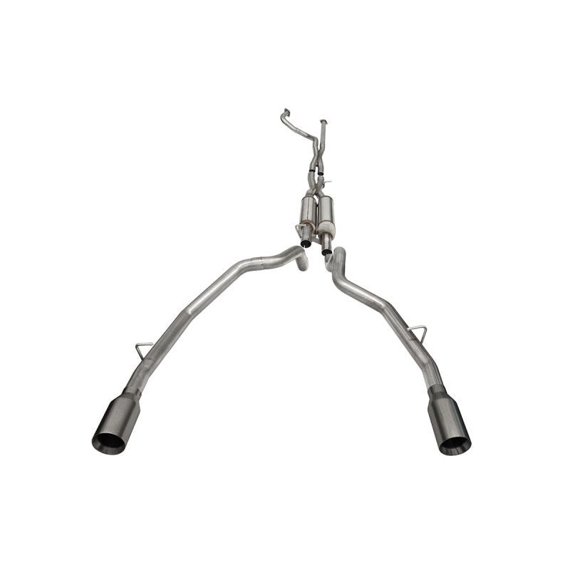 CORSA Performance's 2021+ F150 Exhaust Offering Has Arrived! Featuring a wide range of exhaust systems and exit options (Front of Tire, Side Exit and Dual Rear), CORSA's catback exhaust assortment has an exhaust system for every F150 owner. Made from 3.0 in. 304 stainless steel construction and featuring CORSA's Best-in-Class No Drone RSC(R)Technology, we've customized two unique exhaust sound levels for the F150 customer. CORSA's in.Sport in. sound level offers an aggressive cold start, moderately aggressive exhaust note under acceleration while maintaining stock levels of in-cabin volume. CORSA's Xtreme(TM) system is the loudest exhaust note we offer, noticeably more aggressive than the Sport system on both cold start and during acceleration while only inducing slightly more in-cabin volume. All exhaust systems come with dual wall stainless steel exhaust tips and come available in both polished and Black PVD coating. CORSA Performance exhaust systems are made possible through a 20+ year commitment chasing the in.Science of Sound in.© and are proudly made in the USA and backed by a Limited Lifetime Warranty.