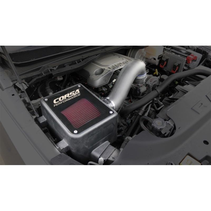 CORSA Performance Air Intake Systems are designed for one thing, Performance. By optimizing airflow and utilizing free-flowing filters, CORSA Performance Intakes outflow stock systems to increase overall performance while protecting your engine. This intake features Volant's high performance MaxFlow 5, 5 layer oiled cotton gauze air filters are made of the highest quality textiles, pleated between a top and bottom aluminum screen. Each filter comes pre-oiled and ready for use. This filter is specifically designed to allow the highest air flow rate possible for maximum power gains but deliver a very long filter life and maintenance intervals (up to 40K miles depending on driving conditions). Whether On-Road or Off, CORSA Performance has you covered.