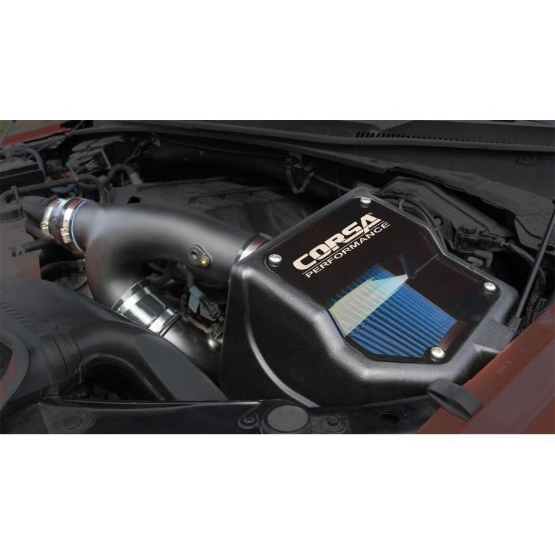 CORSA Performance Air Intake Systems are designed for one thing, Performance. By optimizing airflow and utilizing free-flowing filters, CORSA Performance Intakes outflow stock systems to increase overall performance while protecting your engine. This intake features Volant's high performance MaxFlow 5, 5 layer oiled cotton gauze air filters are made of the highest quality textiles, pleated between a top and bottom aluminum screen. Each filter comes pre-oiled and ready for use. This filter is specifically designed to allow the highest air flow rate possible for maximum power gains but deliver a very long filter life and maintenance intervals (up to 40K miles depending on driving conditions). Whether On-Road or Off, CORSA Performance has you covered.
