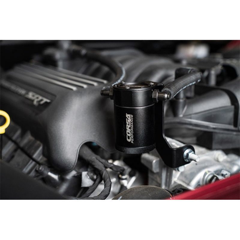 CORSA Performance's oil catch cans are the latest in a line of performance parts designed to maximize vehicle performance and longevity. Made from 6061 aluminum and featuring a multi-stage oil separation system, CORSA Performance oil catch cans work to eliminate blow-by of gas, water, oil vapors and particulates from the airpath. By reducing the impacts of blow-by, oil catch cans prevent damage to sensitive intake components and helps reduce carbon build-up on valves that over time reduce engine performance. Each vehicle specific oil catch can has been designed with OEM style quick disconnect fittings, premium automotive-grade hoses and upgraded components to ensure your vehicle runs at peak performance. Through careful design CORSA engineers have mounted each oil catch can in an easily accessible yet safe location allowing for ease of serviceability.