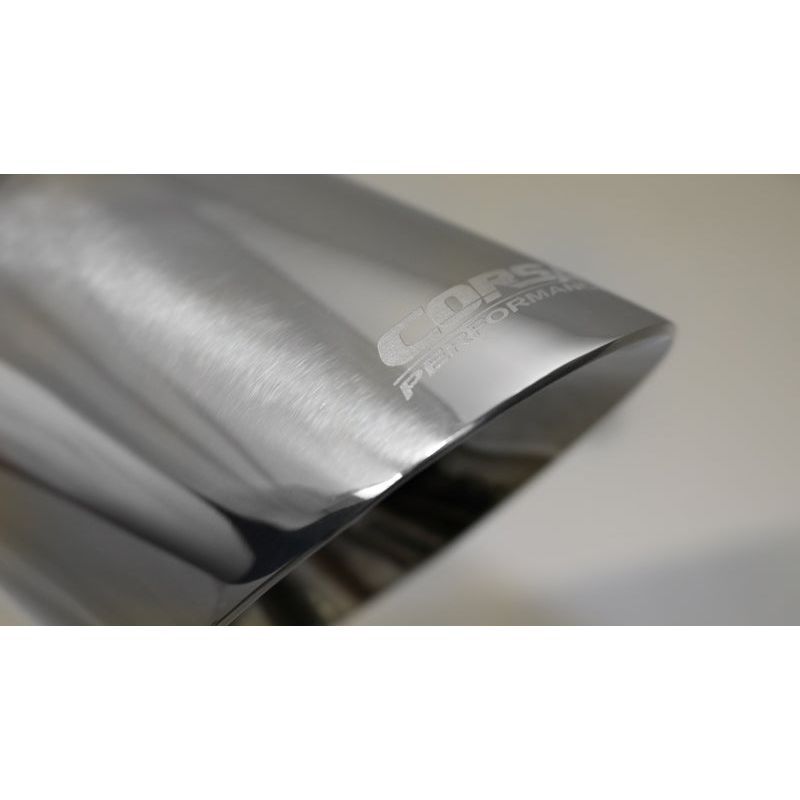 CORSA Performance Pro-Series tips are dual-walled stainless steel. The dual-wall is designed to protect against heat distortion and maintain visual appeal. Each tip is adorned with high-definition, precision laser engraving that provides unmatched detail.