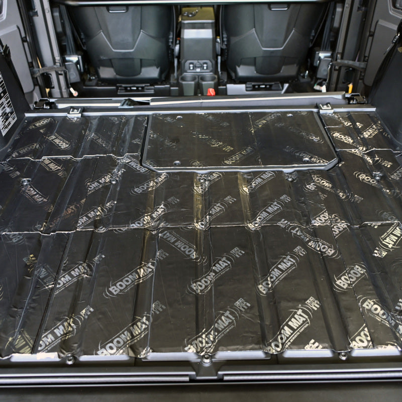 Xpedition ADV interiors are EXTREMELY noisy. DEI’s new Sound Control kit significantly reduces engine noise & vibration, delivering a quieter, more comfortable cabin on every ride. This comprehensive kit features a clean factory-finished look, and is built from durable, high-quality materials. Backed by DEI’s trusted quality & performance and proudly made in the USA.Cabin RoofDEI D-Mat is precision CNC-cut to fit seamlessly inside the front and rear headliners, delivering effective sound deadening and thermal insulation across the entire roof area.Tail Gate, Cargo Sidewalls, and Seat BaseDEI Boom Mat Acoustic Material is precision CNC-cut for a perfect fit in these high-noise areas. Constructed from 2mm thick butyl rubber with an attractive felt-finished surface, it effectively deadens and absorbs sound while delivering a clean, finished appearance. The self-adhesive backing allows for a quick, easy installation.Cargo Floor and Rear FirewallDEI Boom Mat is installed beneath the factory cargo liner to provide full, wall-to-wall coverage of the cargo floor and rear firewall. This 2mm thick butyl rubber material features a finished aluminum facing and a self-adhesive backing, deliveringsuperior sound-deadening performance. The material is trim-to-fit and installs quickly.Install time is approximately 4 hours.