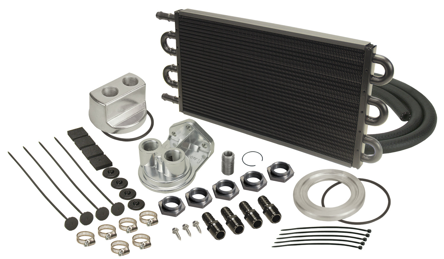 | Description_MKT | This kit not only includes an engine oil cooler but a remote oil filter mount. This Tube & Fin oil cooler kit reduces oil temperatures to help extend the life of lower end components and oil life. It can also help to reduce coolant temperatures. This universal kit comes with a complete installation kit to install easily on most vehicle engines. Filter mount uses Fram PH8A Oil Filter or equivalent. |