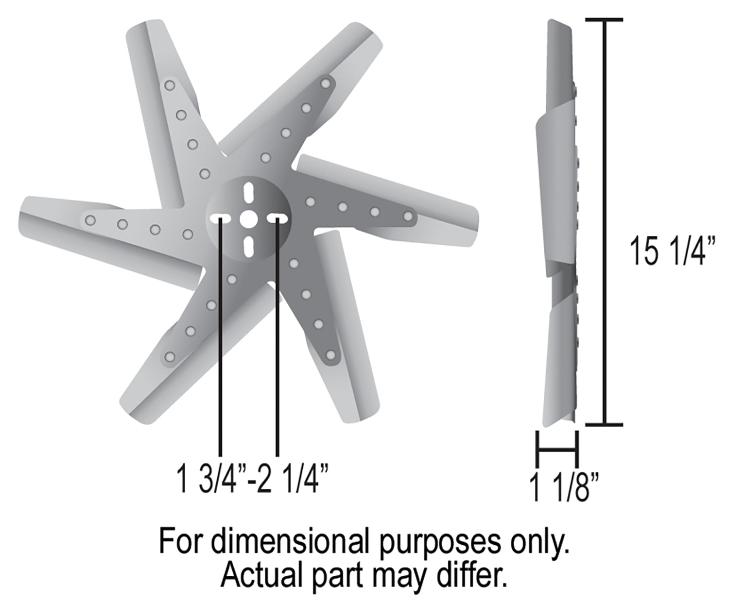 | Description_FAB | 15" High Performance Stainless Steel Reverse Rotation Flex Fan, Black Hub |