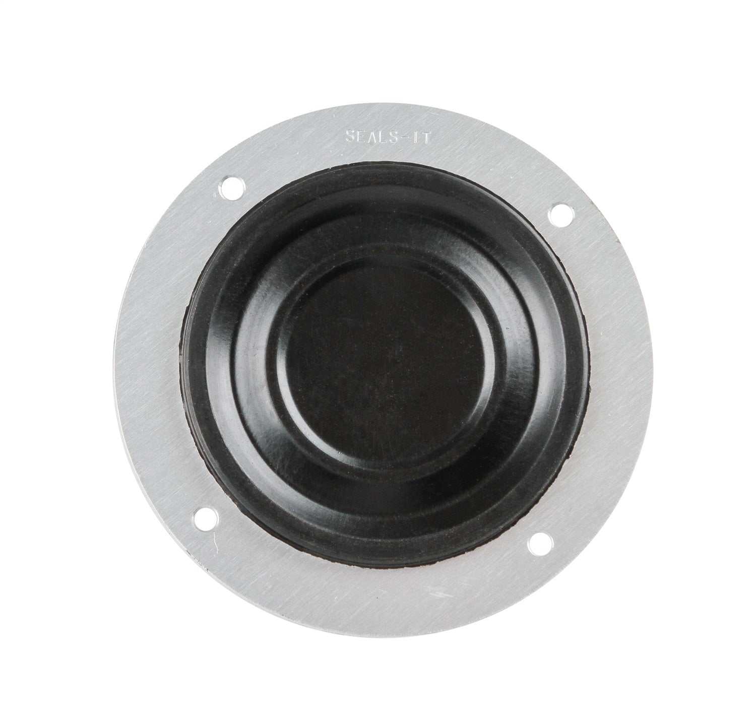 SEALS-IT has designed this unique seal that will stretch to allow the fitting to pass, yet will grip the hose, not allowing fumes or debris to pass through. Made from a fire retardant rubber bonded to an anodized aluminum bezel.
