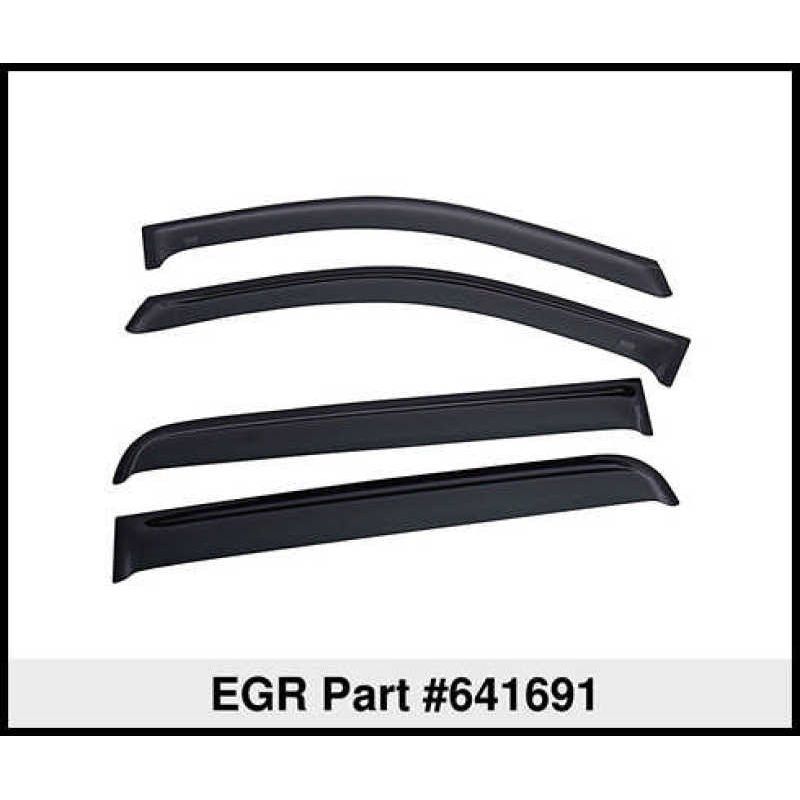 EGR Window Visors are made of a durable, scratch resistant, UV capped acrylic; which will keep your investment from fading, and keep it looking fresh for years to come. With most EGR Window Visors being available in Dark Smoke and Matte Black, customization will never be lacking for the upgrade enthusiast. EGR Window Visors feature an easy, no tools necessary, installation process; whether you choose the classic Tape-on style, or the more modern In-channel style, five minutes or less is all you need! Tape-on Visors utilize a dependable 3M adhesive tape, which will ensure that your EGR Window Visors aren’t going anywhere. All EGR Window Visors come standard with a Limited Lifetime Warranty; meaning that just like our Window Visors, EGR will always be by your side!