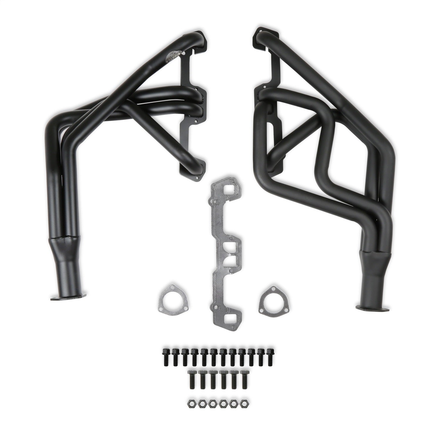 Hooker Competition headers offer the best value in the high performance header market. Designed for the value-conscious buyer, Hooker Competition headers offer premium features at a very competitive price. Made of durable 16 gauge mild steel tubing, the Hooker Competition header design utilizes a long transition collector to reduce back pressure and increase exhaust flow. A perfect sealing surface is assured with the 5/16" machined flanges, with welded O-ring seals. Experience has proven that this flange size is ideal to maintain header integrity and be pliable enough to seal each exhaust port. Tubing is mandrel-bent to maintain metal strength and provide consistent tube diameter at radii to maximize performance. Hooker Competition headers have a standard finish that features a heat-cured, high-heat-resistant paint. Optionally, the famous Hooker Ceramic Thermal Barrier Coating is available.