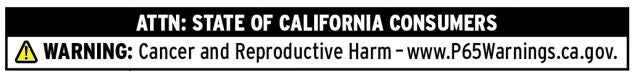 | Prop 65 - Short Label | WARNING: Cancer and reproductive harm - www.P65Warnings.ca.gov. |