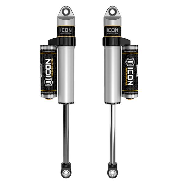 ICON Vehicle Specific (V.S.) 2.5 Aluminum Series shocks are designed and built to give your vehicle outstanding performance off-road and a smooth ride on the street. These shocks are configured specifically for each application in both length and damping tune. Like all ICON'S Shock Absorbers, V.S. 2.5 Aluminum Series shocks are 100% rebuildable and 100% revalveable. For piggyback and specific remote reservoir applications, ICON'S unique use of a 6061 billet aluminum manifold a few inches below the top cap of the shock creates an internal Bump Zone that when used creates an additional 20% of damping force. This additional force helps prevent harsh bottom outs and controls the suspension when compressing at high velocity. If you are looking for a more user defined tune, consider looking into the Compression Damping Control Valve (CDCV) shocks.