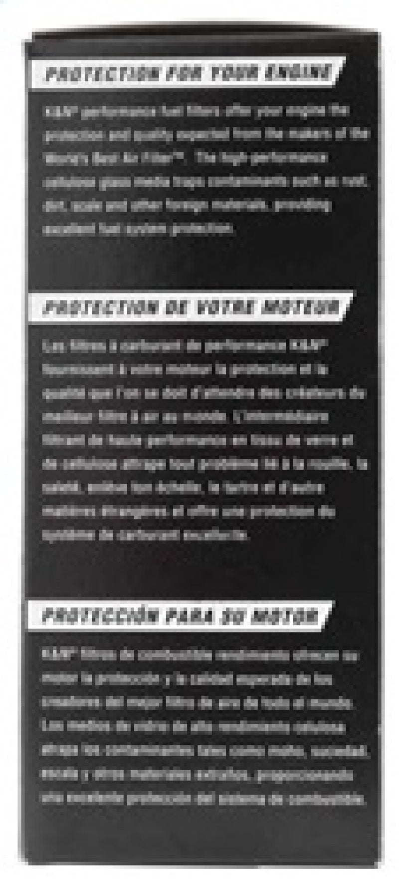 K&N Performance Fuel Filters are built for high flow rates and capacity while they provide outstanding filtration. They have a high strength carbon steel housing and a high performance rolled seam that exceeds OEM pressure requirements. Their high performance cellulose glass media traps contaminants such as rust, dirt, scale and other foreign materials.