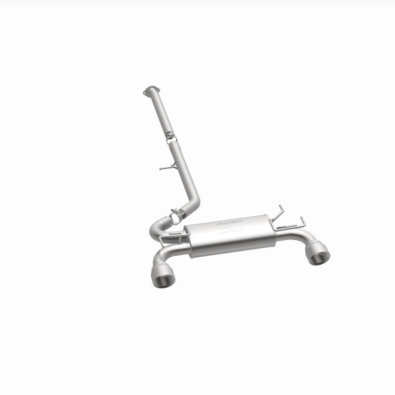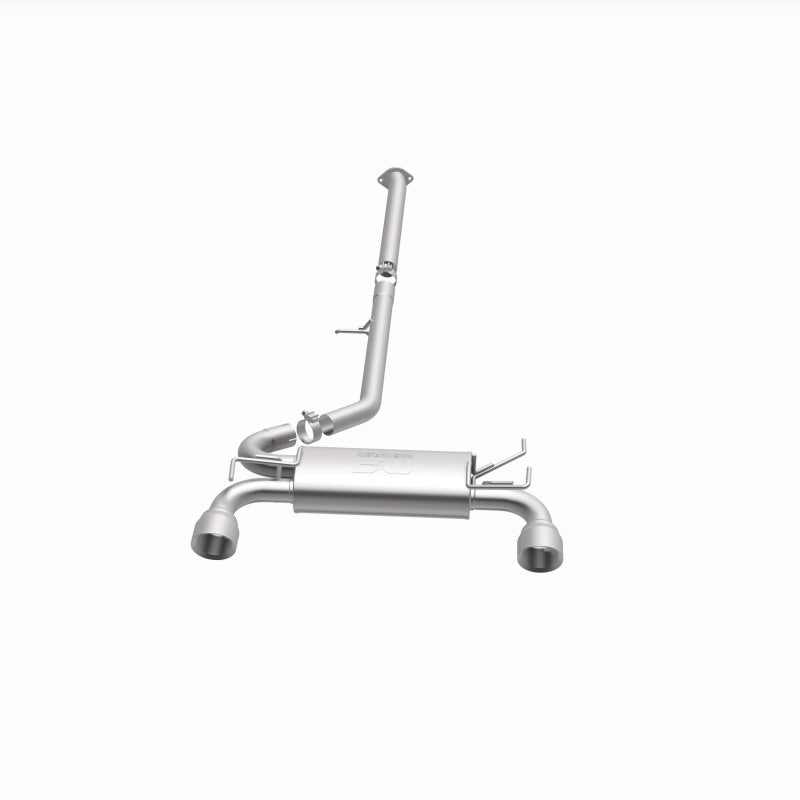 The MagnaFlow 2003-2009 Nissan 350Z Street Series Cat-Back Performance Exhaust System 19342 brings out the personality of your 3.5L 2003-2009 Nissan 350Z with our signature resonant, powerful engine tone and dyno-proven performance. Thanks to its fast-flowing, mandrel bent 2.5in. main piping and 1 Straight-Through mufflers ending in a Dual Split Rear exit with 4.5in. Polished Welded-On Double Wall Angle Cut Folded Edge tips, this Nissan 350Z exhaust kit has the performance chops to match its sporty sound and appearance. Upgrade your ride to the next level with an exhaust that has the pipes to put other Nissan 350Z's to shame. With this system your vehicle will be producing Moderate exterior and Mild interior sound levels while leaving other cars and trucks feeling envious at every stoplight. Exhaust kit 19342 features a cat-back layout that replaces your ride's stock exhaust components from near the catalytic converter on back. Extensive 3D scanning during development has resulted in a direct-fit design that you can easily install yourself. 19342 is produced using CNC precision robotic manufacturing techniques and is backed by MagnaFlow's 1-year limited finish warranty and limited lifetime construction warranty.