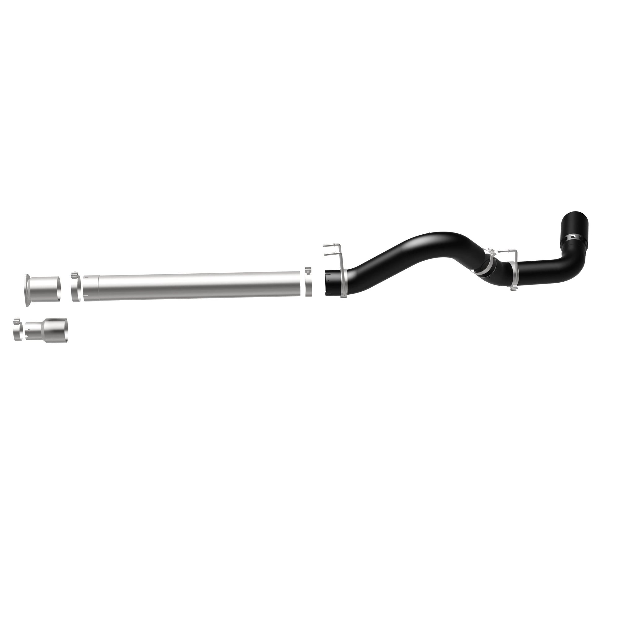 The MagnaFlow Black Series Filter-Back Performance Exhaust System 17067 brings the dyno-proven performance and deep resonating sound that we're known for to your 6.4L, 6.7L 2008-2024 Ford in premium kit that includes tailpipe with a premium black powder-coated finish. This Ford exhaust system is designed to produce Mild interior and Moderate exterior sound levels thanks to clever tuning of its fast-flowing mandrel bent 5in. diameter main piping that ends in a Single Passenger Side Rear exit with 6in. Black Coated Welded-On Single Wall Angle Cut Rolled Edge tips. Exhaust kit 17067's filter-back layout features a direct-fit, easy-to-install design and is made of strong, corrosion-resistant stainless steel. It is produced using CNC precision robotic manufacturing techniques and backed by MagnaFlow's 1-year limited finish warranty and limited lifetime construction warranty.