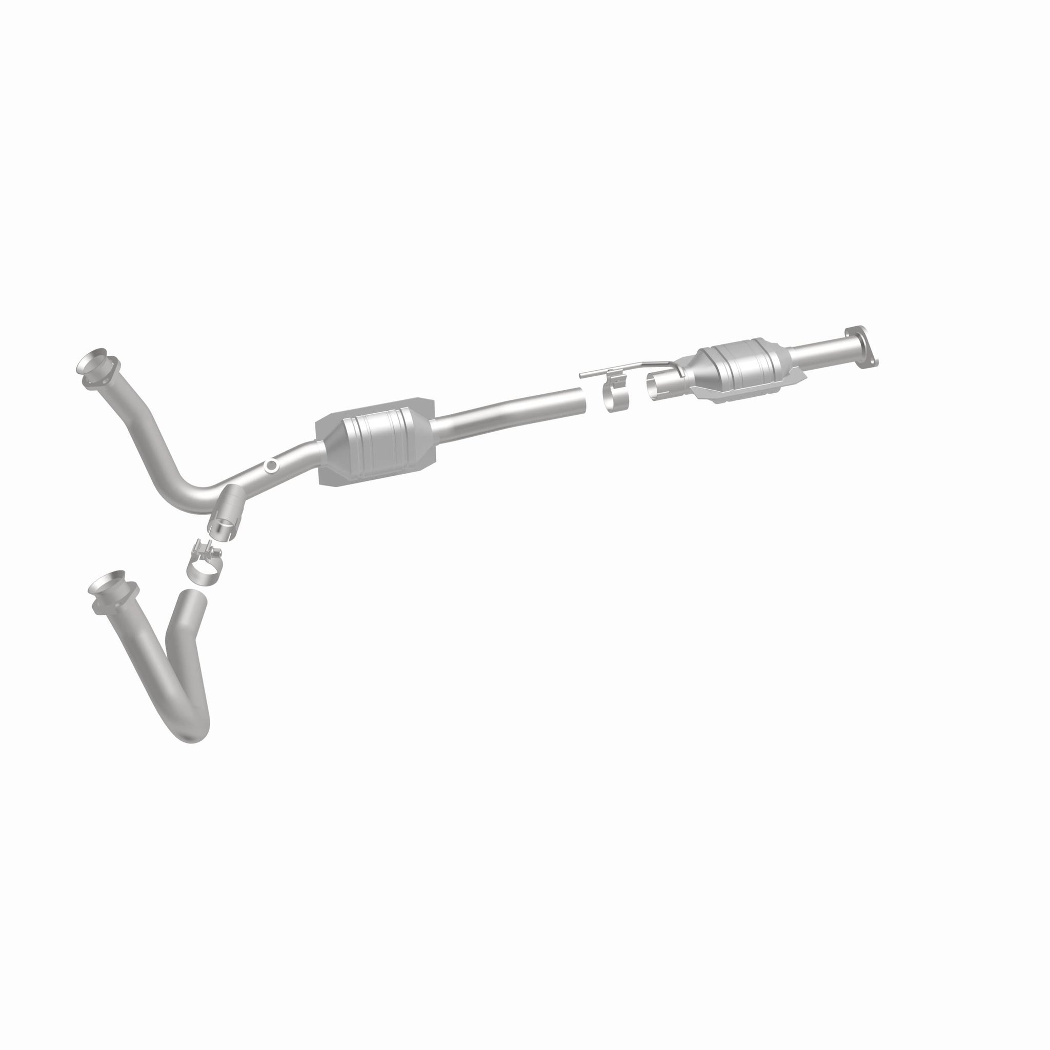 MagnaFlow HM Grade Federal/EPA Compliant Direct-Fit Catalytic Converter 93326 helps keep the check engine light off. DIY installation is easy with the proper tools (no cutting or welding required). With features including mandrel-bent tubing to eliminate flow restrictions and stainless steel construction to resist corrosion, you can have confidence in the quality of this catalytic converter. Using state-of-the-art 3D scanning systems in the design process, the MagnaFlow metrology department ensures this new part to fit and function like the original equipment. This direct-fit catalytic converter is designed specifically for the 1996-1997 Ford Aerostar and interchanges with OE part F69Z-5F250-APA. Hardware is included to eliminate the hassle of working with corroded factory parts. This replacement part is designed to meet or exceed Federal emissions requirements set forth by the EPA, complying with legal standards for OBDII Federally registered vehicles with Federal/EPA Emission systems.