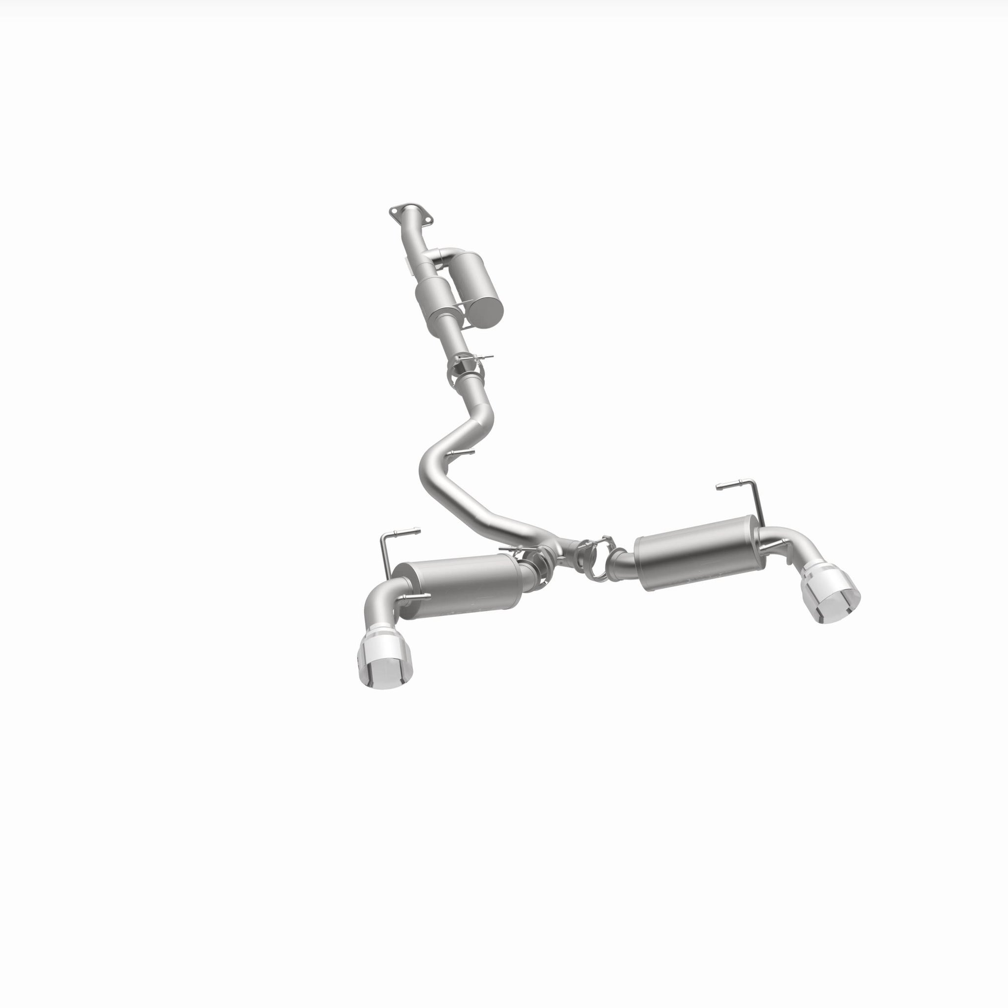 The MagnaFlow Toyota 86/Toyota GR86/Subaru BRZ/Scion FR-S NEO Series Performance Exhaust System #19595 brings dyno-proven performance and our latest exhaust advancements to your Japanese sportscar with an aggressive exterior sound and well-controlled, moderate interior sound made possible by careful integration of our No Drone Technology (NDT). By utilizing NDT in its design, exhaust kit #19595 is able to minimize the unwanted droning noise that can otherwise occur at cruising speeds. Exhaust system #19595 is compatible with 2022-2024 Toyota GR86s, 2013-2024 Subaru BRZs, 2017-2020 Toyota 86s and 2013-2016 Scion FR-Ss. This GR86/BRZ/86/FR-S exhaust system features 2.5” fast-flowing mandrel bent main piping that flows through a straight-through muffler and NDT resonator before terminating in a dual rear exit with 4.5” polished tips. The direct-fit design enables do-it-yourself installation and can be easily removed thanks to the use of racing-bred V-band clamps. #19595 is made of premium, durable and corrosion resistant stainless steel and is produced used CNC precision robotic manufacturing techniques, all backed by MagnaFlow’s limited lifetime warranty.