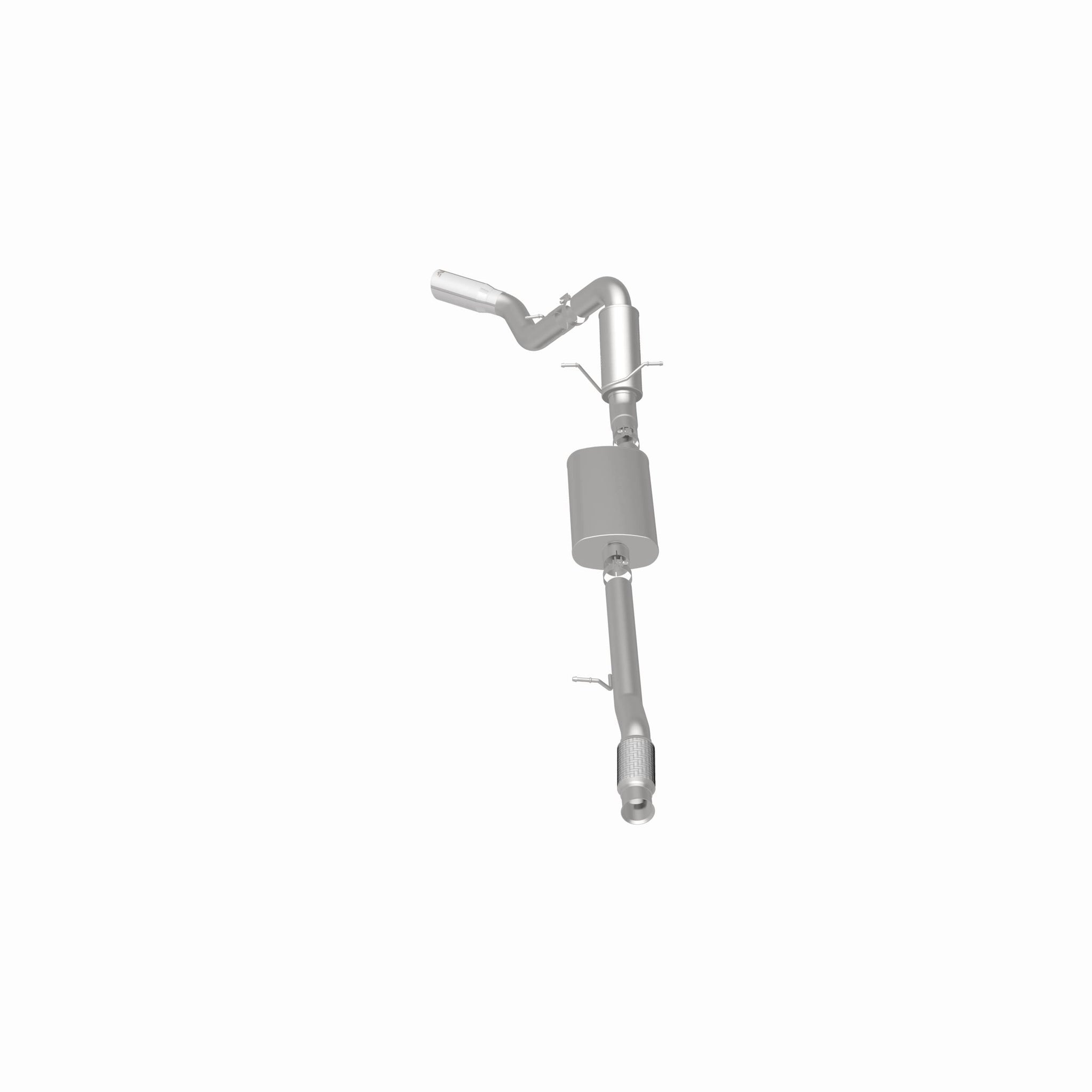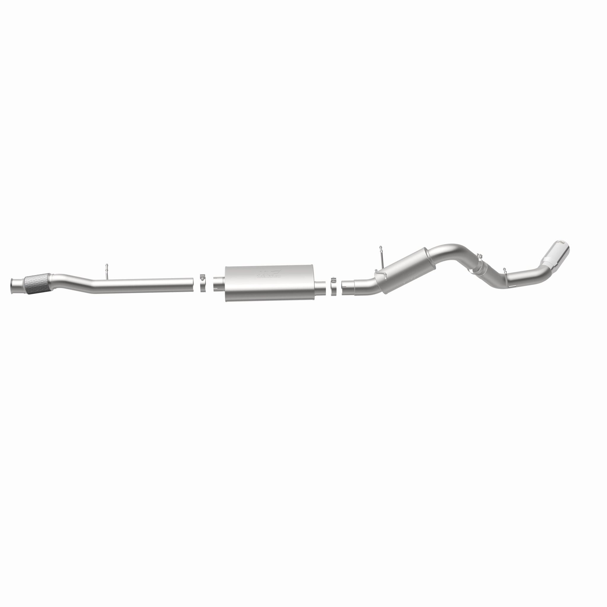 The MagnaFlow Street Series Cat-Back Performance Exhaust System 15318 brings out the personality of your Truck with our signature resonant, powerful engine tone and dyno-proven performance. Thanks to its fast-flowing, mandrel bent 4in. main piping and 2 Straight-Through mufflers ending in a Single Passenger Side Rear exit with 5in. Polished Welded-On Double Wall Angle Cut Rolled Edge tips, this Truck exhaust kit has the performance chops to match its sporty sound and appearance. Upgrade your ride to the next level with an exhaust that has the pipes to put other Truck's to shame. With this system your vehicle will be producing Moderate exterior and Mild interior sound levels while leaving other cars and trucks feeling envious at every stoplight. Exhaust kit 15318 features a cat-back layout that replaces your ride's stock exhaust components from near the catalytic converter on back. Extensive 3D scanning during development has resulted in a direct-fit design that you can easily install yourself. 15318 is produced using CNC precision robotic manufacturing techniques and is backed by MagnaFlow's 1-year limited finish warranty and limited lifetime construction warranty.