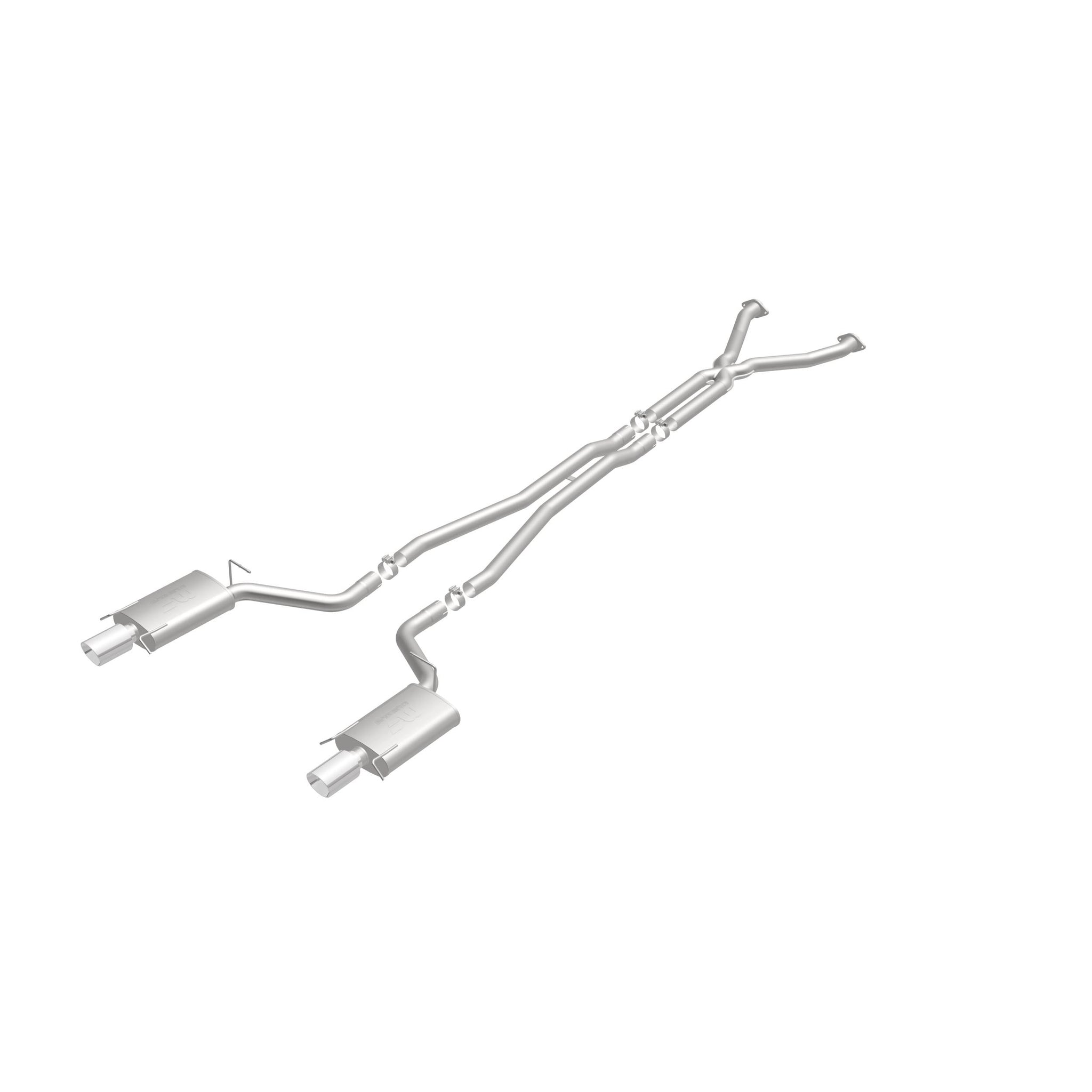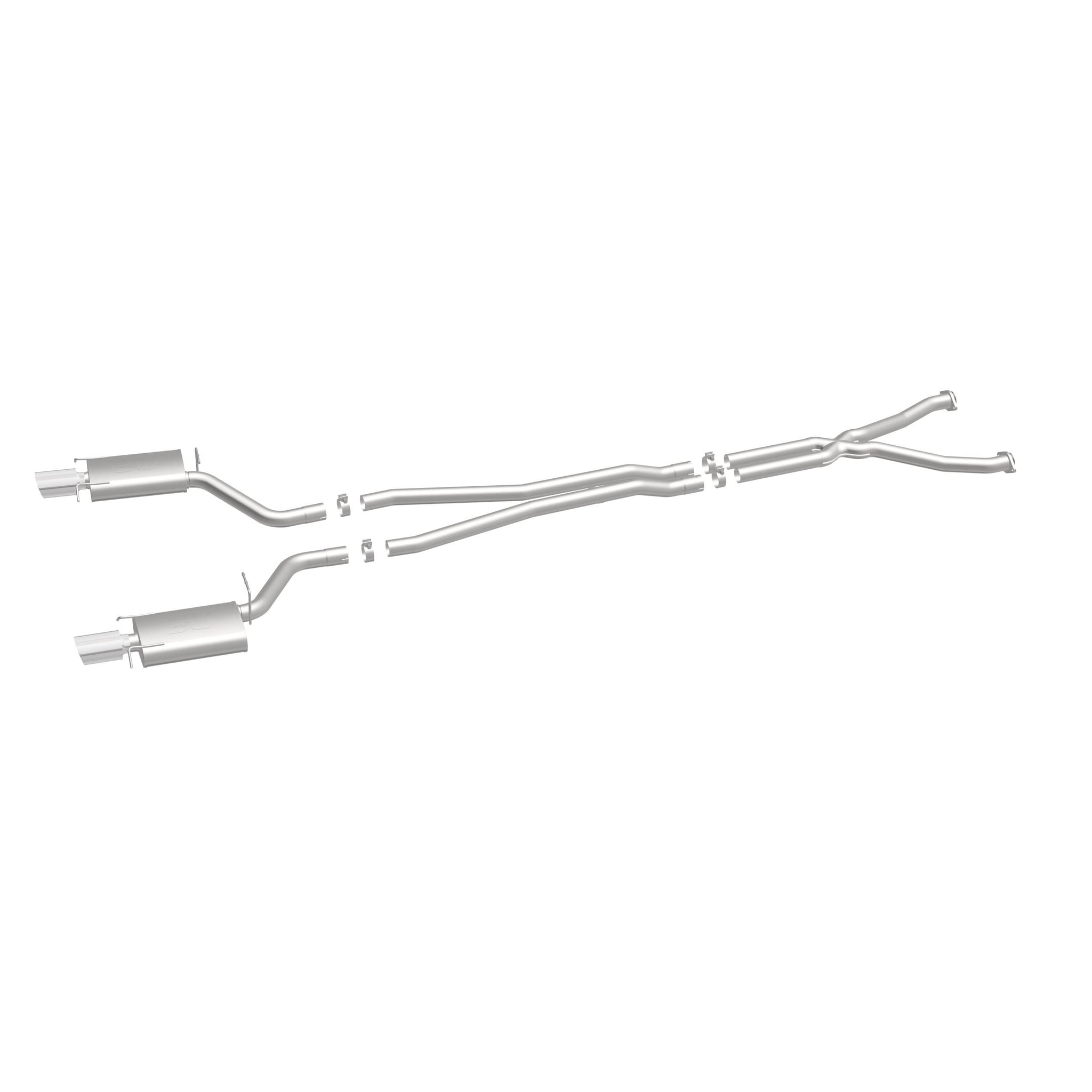 The MagnaFlow 2004-2005 Cadillac CTS Street Series Cat-Back Performance Exhaust System brings out the personality of your 5.7L 2004-2005 Cadillac CTS with our signature resonant, powerful engine tone and dyno-proven performance. Thanks to its fast-flowing, mandrel bent 2.5in. main piping and 2 Straight-Through mufflers ending in a Dual Split Rear exit with 4in. Polished Welded-On Double Wall Angle Cut Folded Edge tips, this Cadillac CTS exhaust kit has the performance chops to match its sporty sound and appearance. Upgrade your ride to the next level with an exhaust that has the pipes to put other Cadillac CTS's to shame. With this system your vehicle will be producing Moderate exterior and Mild interior sound levels while leaving other cars and trucks feeling envious at every stoplight. Exhaust kit 16636 features a cat-back layout that replaces your ride's stock exhaust components from near the catalytic converter on back. Extensive 3D scanning during development has resulted in a direct-fit design that you can easily install yourself. 16636 is produced using CNC precision robotic manufacturing techniques and is backed by MagnaFlow's 1-year limited finish warranty and limited lifetime construction warranty.