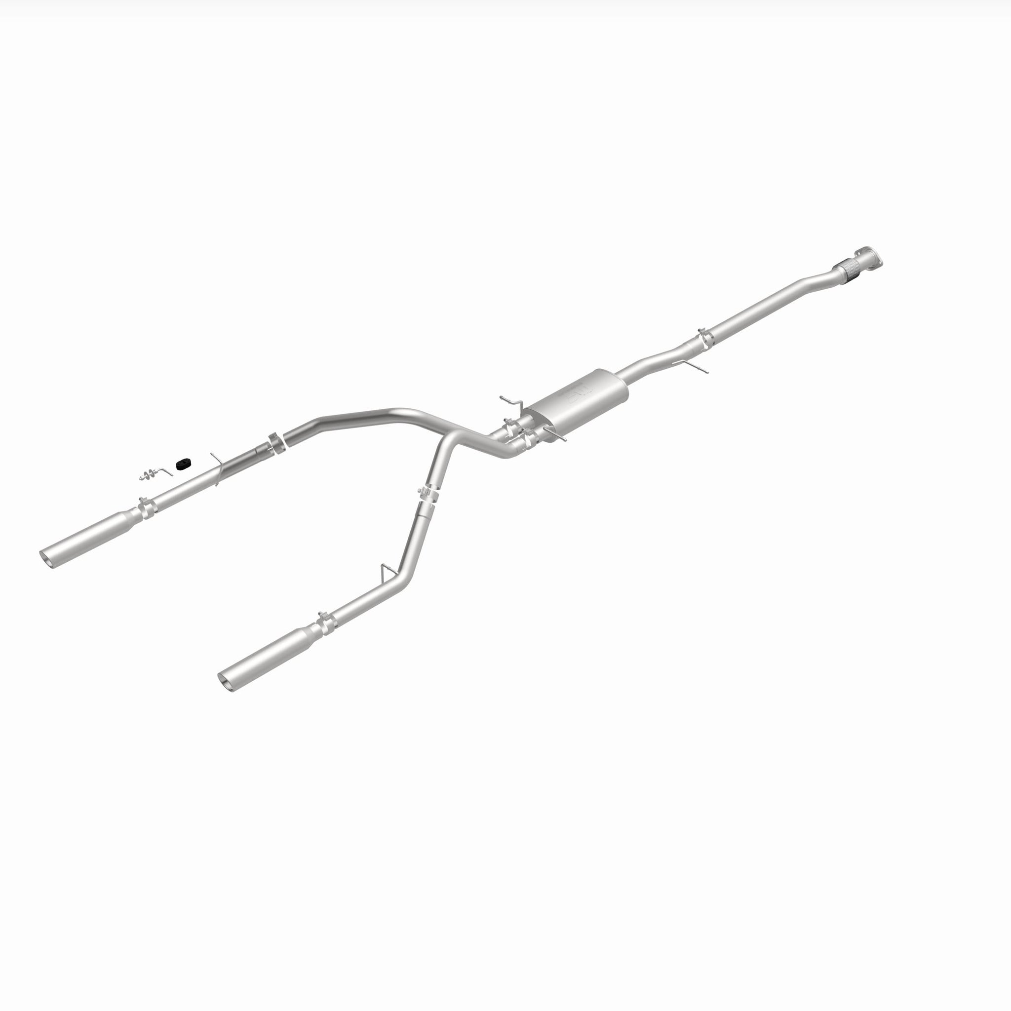 The MagnaFlow Street Series Cat-Back Performance Exhaust System 16741 brings out the personality of your Truck with our signature resonant, powerful engine tone and dyno-proven performance. Thanks to its fast-flowing, mandrel bent 3in. main piping and 1 Straight-Through mufflers ending in a Dual Split Rear exit with 3.5in. Polished Clamp-On Single Wall Angle Cut Rolled Edge tips, this Truck exhaust kit has the performance chops to match its sporty sound and appearance. Upgrade your ride to the next level with an exhaust that has the pipes to put other Truck's to shame. With this system your vehicle will be producing Aggressive exterior and Moderate interior sound levels while leaving other cars and trucks feeling envious at every stoplight. Exhaust kit 16741 features a cat-back layout that replaces your ride's stock exhaust components from near the catalytic converter on back. Extensive 3D scanning during development has resulted in a direct-fit design that you can easily install yourself. 16741 is produced using CNC precision robotic manufacturing techniques and is backed by MagnaFlow's 1-year limited finish warranty and limited lifetime construction warranty.