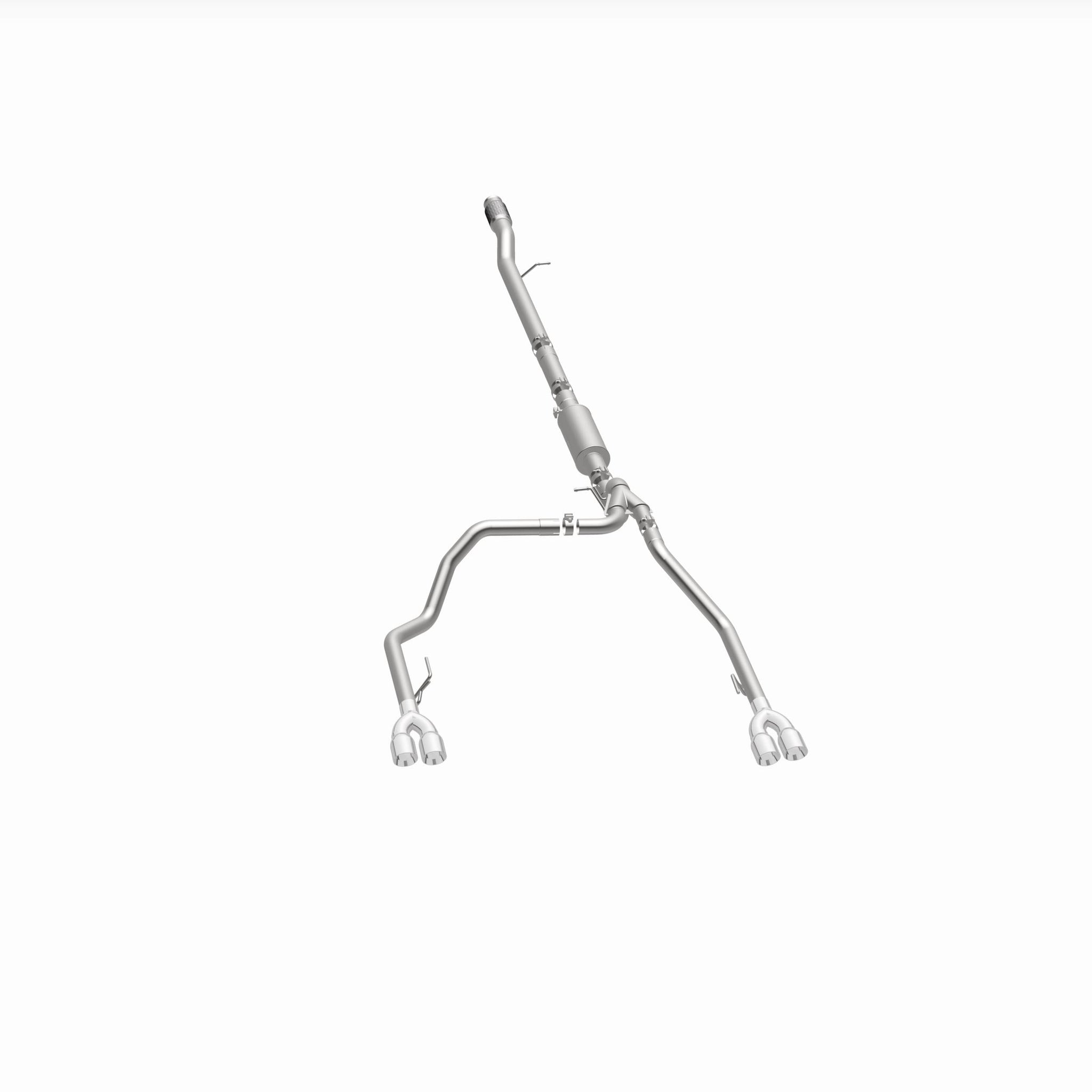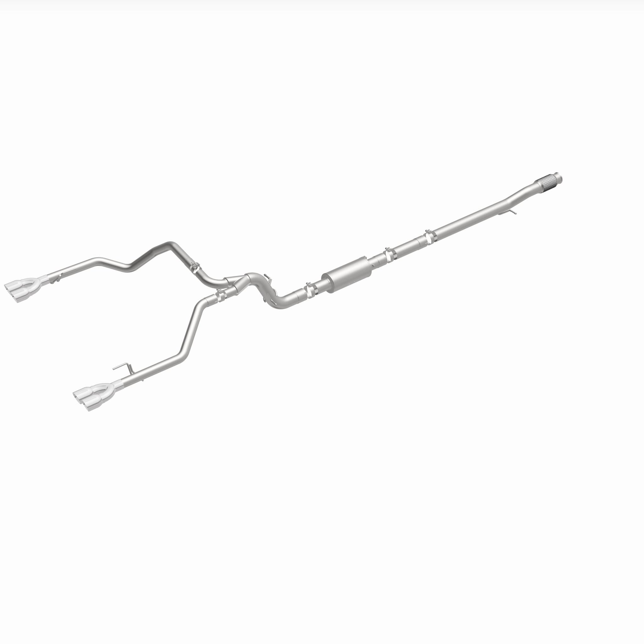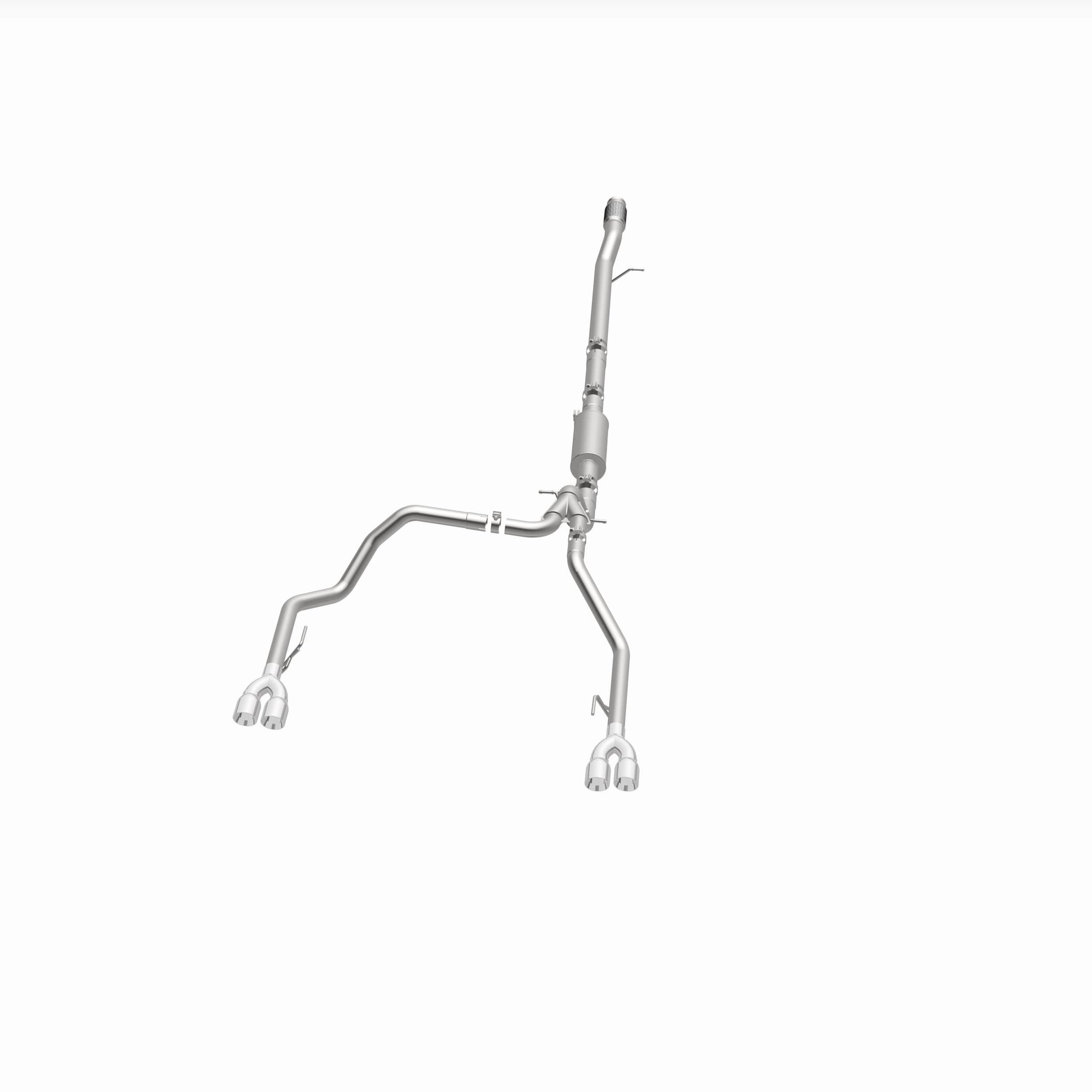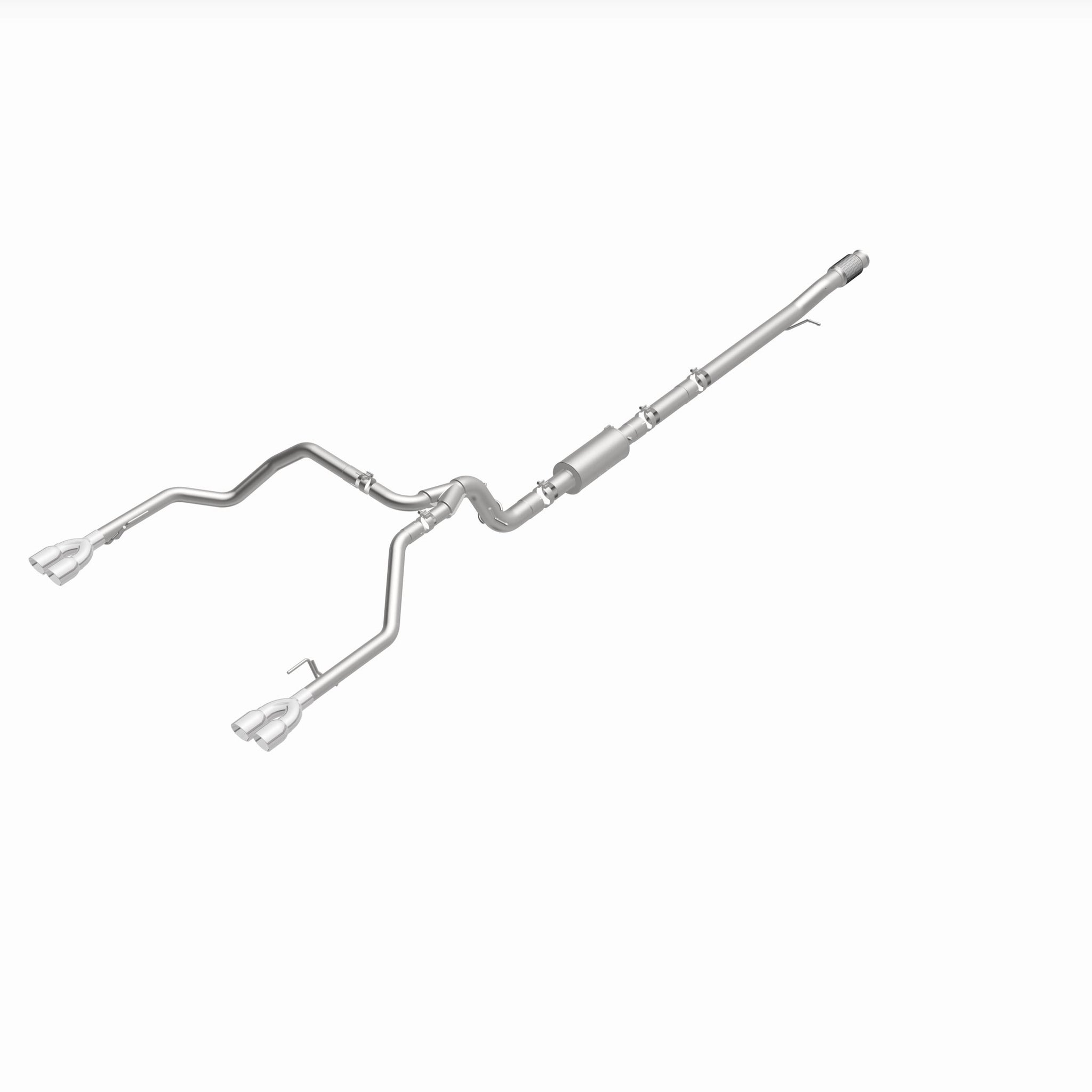 The MagnaFlow Street Series Cat-Back Performance Exhaust System 19489 brings out the personality of your Truck with our signature resonant, powerful engine tone and dyno-proven performance. Thanks to its fast-flowing, mandrel bent 3.5in. main piping and 1 Straight-Through mufflers ending in a Quad Split Rear exit with 3.5in. Polished Welded-On Double Wall Angle Cut Folded Edge tips, this Truck exhaust kit has the performance chops to match its sporty sound and appearance. Upgrade your ride to the next level with an exhaust that has the pipes to put other Truck's to shame. With this system your vehicle will be producing Aggressive exterior and Moderate interior sound levels while leaving other cars and trucks feeling envious at every stoplight. Exhaust kit 19489 features a cat-back layout that replaces your ride's stock exhaust components from near the catalytic converter on back. Extensive 3D scanning during development has resulted in a direct-fit design that you can easily install yourself. 19489 is produced using CNC precision robotic manufacturing techniques and is backed by MagnaFlow's 1-year limited finish warranty and limited lifetime construction warranty.