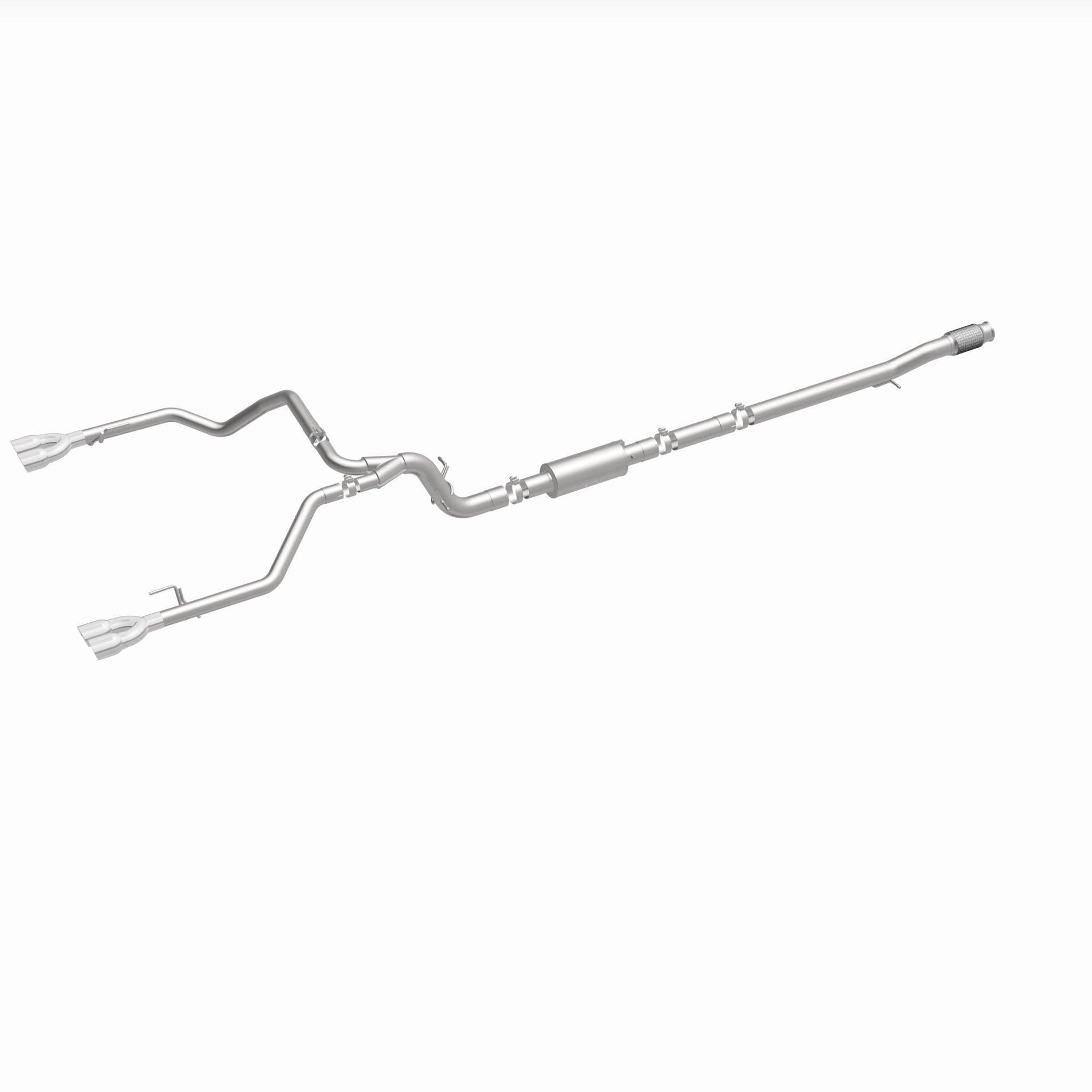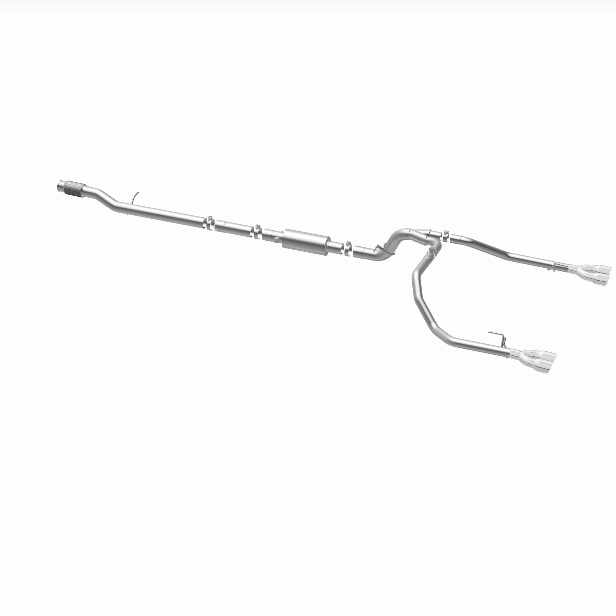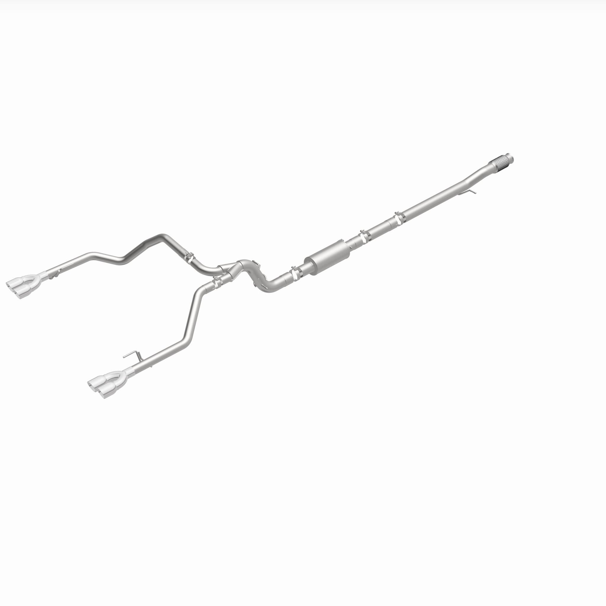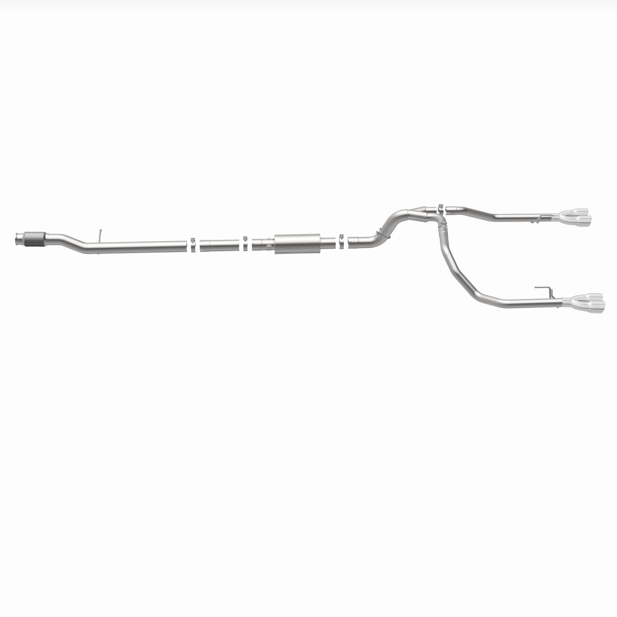 The MagnaFlow Street Series Cat-Back Performance Exhaust System 19489 brings out the personality of your Truck with our signature resonant, powerful engine tone and dyno-proven performance. Thanks to its fast-flowing, mandrel bent 3.5in. main piping and 1 Straight-Through mufflers ending in a Quad Split Rear exit with 3.5in. Polished Welded-On Double Wall Angle Cut Folded Edge tips, this Truck exhaust kit has the performance chops to match its sporty sound and appearance. Upgrade your ride to the next level with an exhaust that has the pipes to put other Truck's to shame. With this system your vehicle will be producing Aggressive exterior and Moderate interior sound levels while leaving other cars and trucks feeling envious at every stoplight. Exhaust kit 19489 features a cat-back layout that replaces your ride's stock exhaust components from near the catalytic converter on back. Extensive 3D scanning during development has resulted in a direct-fit design that you can easily install yourself. 19489 is produced using CNC precision robotic manufacturing techniques and is backed by MagnaFlow's 1-year limited finish warranty and limited lifetime construction warranty.