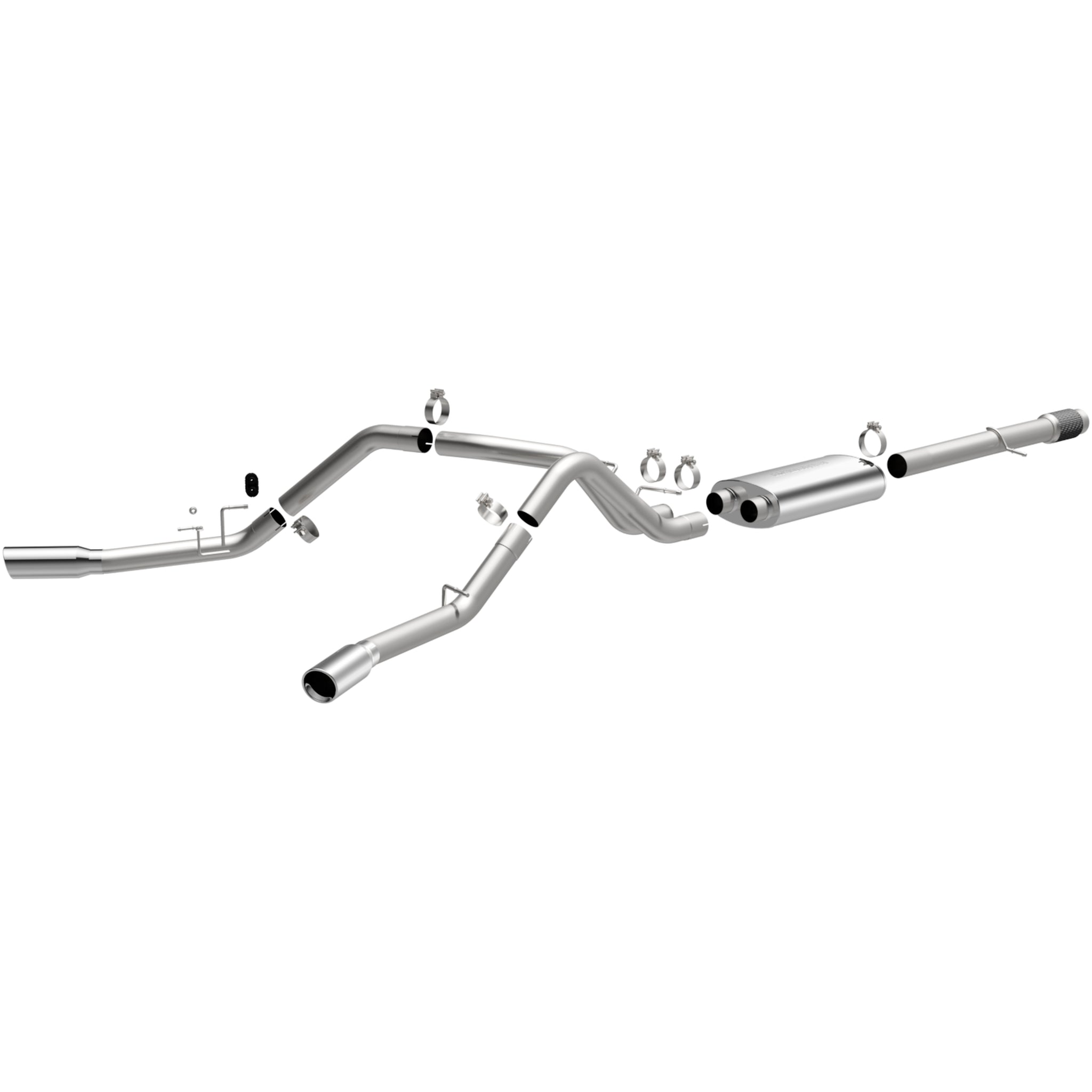 The MagnaFlow GMC Sierra 1500 Street Series 15205 brings out the personality of your 6.2L 2011-2013 GMC Sierra 1500 with our signature resonant, powerful engine tone and dyno-proven performance. Thanks to its fast-flowing, mandrel bent 3.5in. main piping and 1 Straight-Through mufflers ending in a Dual Split Rear Behind Rear Tires exit with 4in. Polished Rolled Edge-Double Wall-Angle Cut tips, this GMC Sierra 1500 exhaust kit has the performance chops to match its sporty sound and appearance. Upgrade your ride to the next level with an exhaust that has the pipes to put other GMC Sierra 1500’s to shame. With this system your vehicle will be producing Agressive exterior and Moderate interior sound levels while leaving other cars and trucks feeling envious at every stoplight. Exhaust kit 15205 features a cat-back layout that replaces your ride’s stock exhaust components from near the catalytic converter on back. Extensive 3D scanning during development has resulted in a direct-fit design that you can easily install yourself. 15205 is produced using CNC precision robotic manufacturing techniques and is backed by MagnaFlow’s 1-year limited finish warranty and limited lifetime construction warranty.