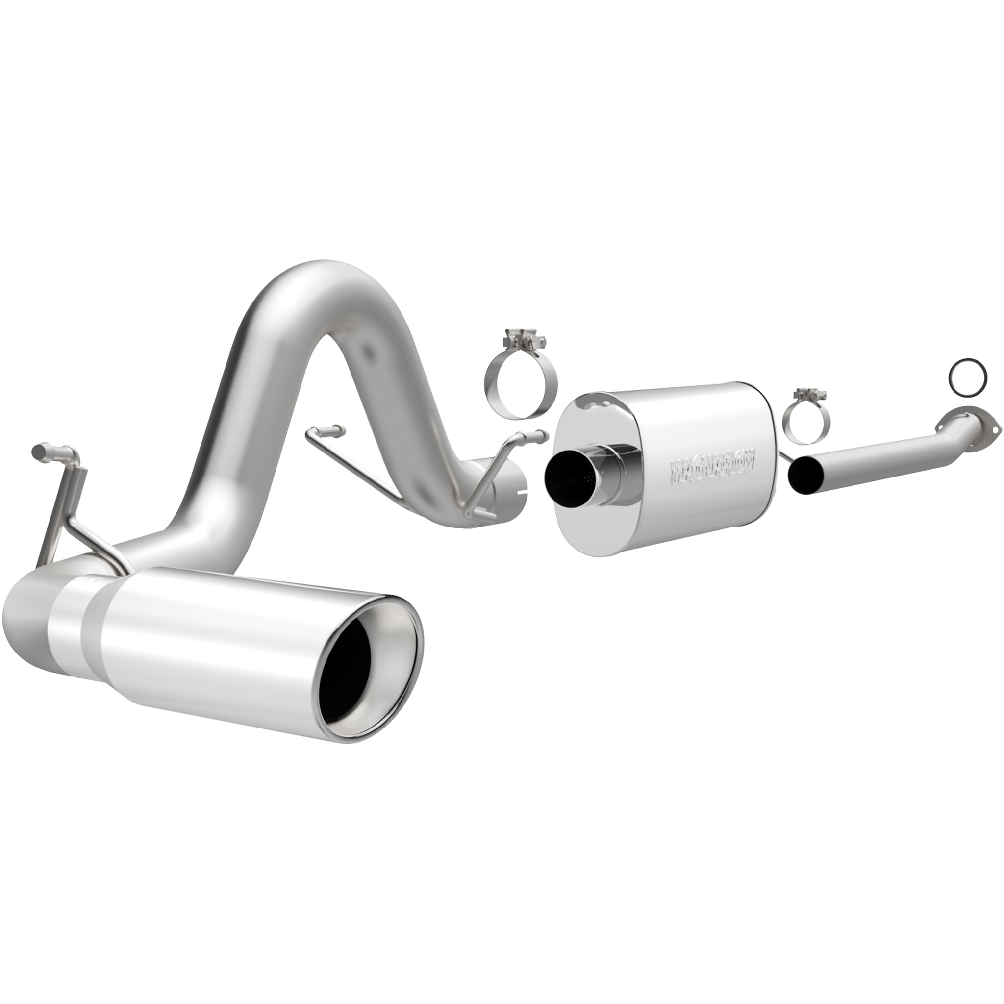 The MagnaFlow 2013-2015 Toyota Tacoma Street Series Cat-Back Performance Exhaust System 15240 brings out the personality of your 2.7L 2013-2015 Toyota Tacoma with our signature resonant, powerful engine tone and dyno-proven performance. Thanks to its fast-flowing, mandrel bent 3in. main piping and 1 Straight-Through mufflers ending in a Single Passenger Side Rear exit with 4in. Polished Welded-On Double Wall Angle Cut Rolled Edge tips, this Toyota Tacoma exhaust kit has the performance chops to match its sporty sound and appearance. Upgrade your ride to the next level with an exhaust that has the pipes to put other Toyota Tacoma's to shame. With this system your vehicle will be producing Moderate exterior and Mild interior sound levels while leaving other cars and trucks feeling envious at every stoplight. Exhaust kit 15240 features a cat-back layout that replaces your ride's stock exhaust components from near the catalytic converter on back. Extensive 3D scanning during development has resulted in a direct-fit design that you can easily install yourself. 15240 is produced using CNC precision robotic manufacturing techniques and is backed by MagnaFlow's 1-year limited finish warranty and limited lifetime construction warranty.