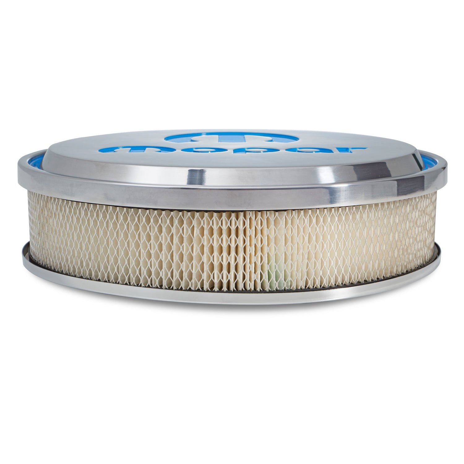 Slant-Edge Air Cleaners are the perfect way to complete your dress-up look in premium Slant-Edge style. If you've got polished or chrome valve covers, these will set your engine bay OFF like no other air cleaner. The over-sized MOPAR emblem with MOPAR blue inlaid paint is next level. They are supplied with genuine 3" GM air filter elements (GM P/N 6421746, AC Delco P/N A212CW) for maximum airflow. Each kit is supplied with necessary mounting hardware. Technical Note: After installing a new air cleaner, always lower the hood slowly to confirm sufficient clearance visually. Minimum clearance of 3-3/4" is required from the top of the carburetor gasket area to the underside of the hood. The air cleaner base is recessed for a low profile appearance. Patented Design.