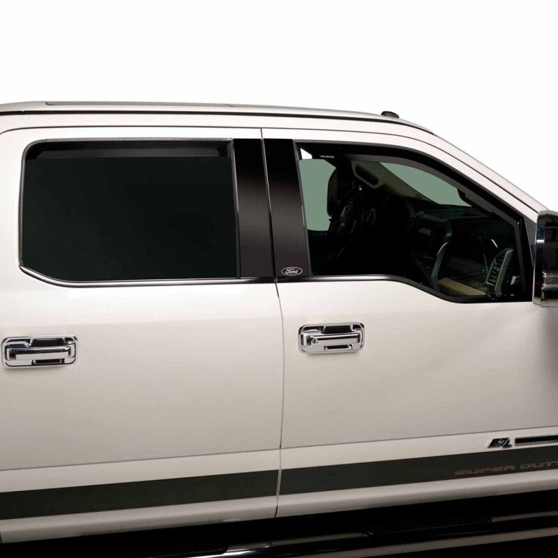 Want a unique and premium look for your Ford Truck? Look no further... the Putco Platinum Black stainless steel pillar post trim is tailor-made for a seamless fit on your F-150, F-250, or F-350. Running the length of your side pillars, these polished metal 3M™ backed pillar posts add a clean sharp look to your profile that’s sure to turn heads. Best of all, they’re manufactured from pure T-304 stainless steel with black finish and they’ll outshine, outlast, and outperform other inferior pillar posts. The best part is that each pillar post is laser etched to perfection with the F-150 logo or the Ford Oval for the Super Duty as these are Ford Licensed products. Each kit is backed by Putco's NeveRust™ Limited Lifetime Warranty.Manufactured in the USA by Putco from Des Moines, IA