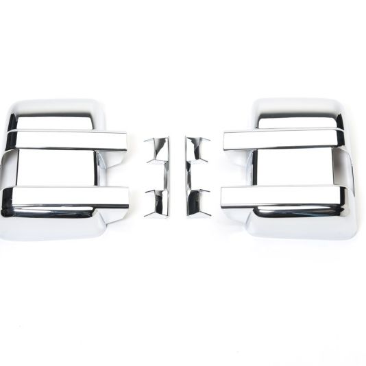 Give your mirrors an extra shine with Putco Chrome Mirror Covers. Our mirror covers are constructed out of the OEM automotive grade ABS chrome. ABS chrome covers have been tested to withstand all the elements and everything the road can throw at it. Each cover is custom made to fit your type of mirror for your year, make, and model. Putco's chrome mirror covers also match any other OEM chrome you have on your vehicle. Installation is made simple and easy with our pre-applied automotive-grade 3M tape. No drilling necessary, just peel and stick.