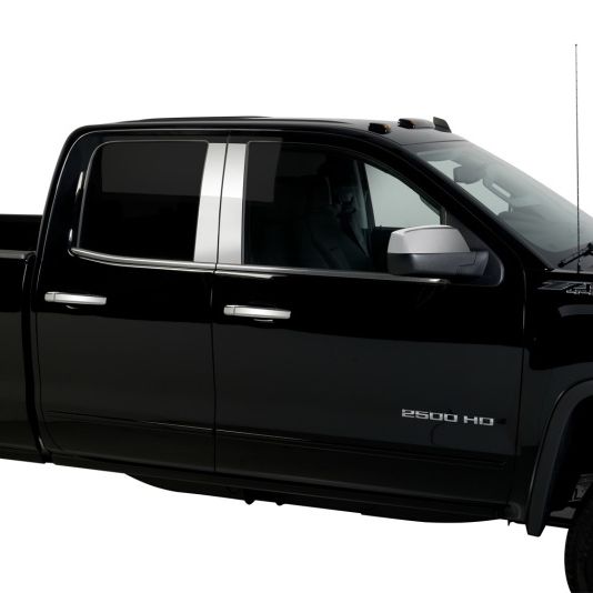Upgrade your basic truck with these sleek and stylish Pillar Post Trim Accents. Manufactured using high-quality stainless steel, these accents are crafted with precision using CAD equipment and laser cutting technology, ensuring a perfect fit for your vehicle. The bright, mirror polished finish gives them an OEM appearance, seamlessly blending with your truck's existing chrome accents.Installation is a breeze with the supplied 3M double-sided automotive bonding tape, making it quick and hassle-free to achieve an immediate upgrade for your truck. These Pillar Post Door Trim Accents are custom designed to fit your specific year, make, and model, enhancing your vehicle's body lines and overall aesthetic.Crafted from premium T-304 stainless steel with a highly polished 28GA finish, these trim accents boast a mirror-like shine that is sure to turn heads. The quality and design of these accents are best-in-class, backed by a limited lifetime warranty for your peace of mind.It's worth noting that these Pillar Post Trim Accents are proudly designed and manufactured in the USA by Putco, located in Des Moines, IA. Upgrade your truck today and enjoy the perfect blend of style, durability, and ease of installation with these sleek Pillar Post Trim Accents.