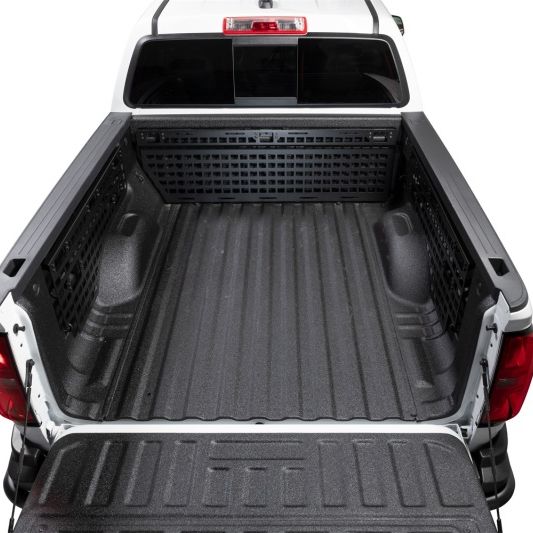 Secure your cargo in the back of your truck bed with this next level one of a kind truck bed storage organizing system. New from Putco are the Molle Panel inside truck bed panels system. This amazing cargo storage system is perfect for latching down nearly anything you want to secure in place like Molle bag, trail gear, construction gear, jacks, or anything your heart desires. Available for the bulkhead, side bed and tailgate area. Choose from getting the entire set or just getting one side. Great for Overlanding pickup trucks or work trucks to hang and organize gear, tools and more. These truck bedside organizers called molle panels are great for storing your gear and organizing your truck bed whether you use your pickup for work or play. Plus the are a must-have for the overland truck for your next outdoor adventure.Constructed out of durable CNC cut 10 gauge aluminum that is finished with a mini-textured black powder-coat. This American made panel system works with most industry-leading mounting accessories like Quickfist, Kolpin, Molle, and much more. Also, this come is compatible with most soft roll-up and hard fold cover on the market.Installing a Molle panel is simple with no drilling or cutting of any kind and its custom design for your year, make and model allows you to use your OEM tie-down area and other standard OEM features of your truck. Each panel is backed by a three-year warranty. So if you are tired of your cargo rolling around and want it secured in place the Putco Molle Panels are for you.