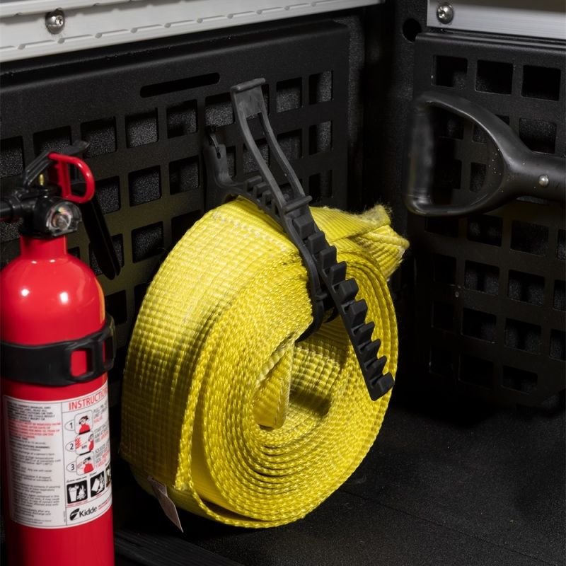 Secure your cargo in the back of your truck bed with this next level one of a kind truck bed storage organizing system. New from Putco are the Molle Panel inside truck bed panels system. This amazing cargo storage system is perfect for latching down nearly anything you want to secure in place like Molle bag, trail gear, construction gear, jacks, or anything your heart desires. Available for the bulkhead, side bed and tailgate area. Choose from getting the entire set or just getting one side. Great for Overlanding pickup trucks or work trucks to hang and organize gear, tools and more. These truck bedside organizers called molle panels are great for storing your gear and organizing your truck bed whether you use your pickup for work or play. Plus the are a must-have for the overland truck for your next outdoor adventure.Constructed out of durable CNC cut 10 gauge aluminum that is finished with a mini-textured black powder-coat. This American made panel system works with most industry-leading mounting accessories like Quickfist, Kolpin, Molle, and much more. Also, this come is compatible with most soft roll-up and hard fold cover on the market.Installing a Molle panel is simple with no drilling or cutting of any kind and its custom design for your year, make and model allows you to use your OEM tie-down area and other standard OEM features of your truck. Each panel is backed by a three-year warranty. So if you are tired of your cargo rolling around and want it secured in place the Putco Molle Panels are for you.