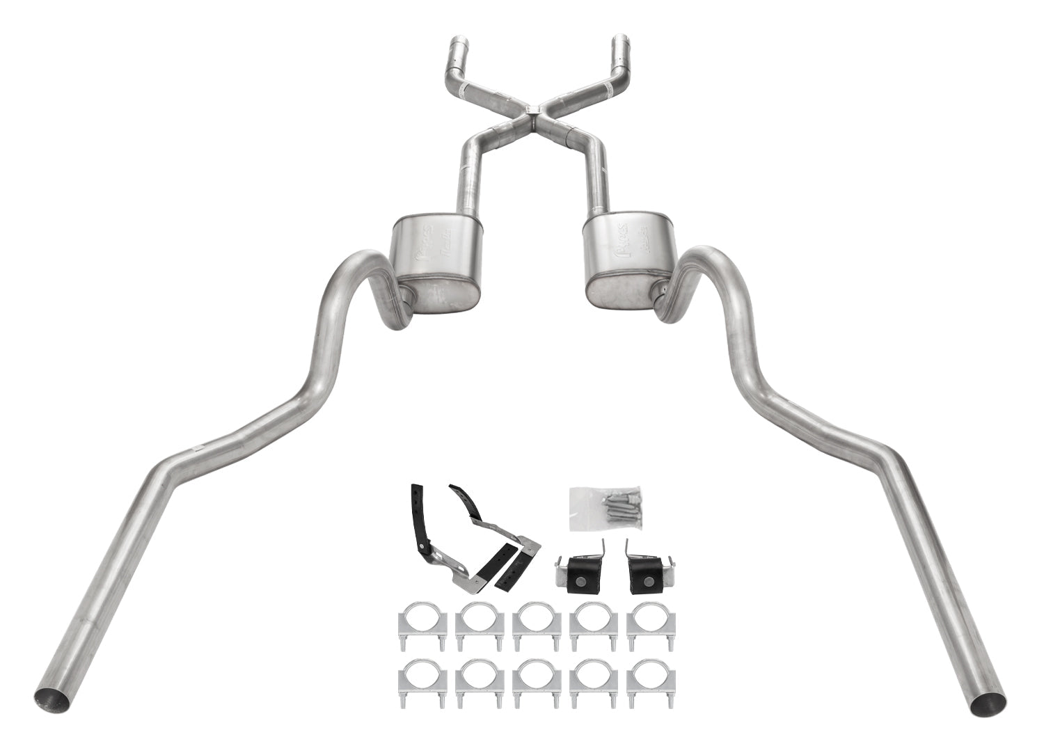 Our mufflers, X-pipe, oem style stainless tailpipes, are also stainless constructed and precision matched to deliver the ultimate in sound and performance. Cad plated or stainless clamps, stainless hangers and polished stainless tips are available and included in most systems. These systems can be installed at home without any special tools.
