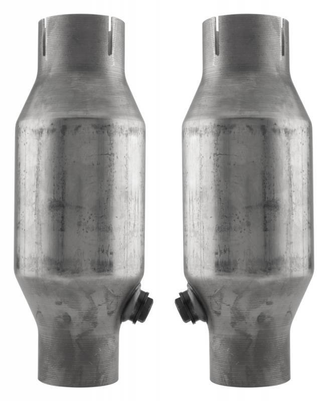 These converters are a made from a high quality 304 grade stainless steel. The ceramic substrate is a durable factory style design. These converters feature a 2.5 inch slip fit design with an overall length of 11 inch. The overall diameter is 4 inch.