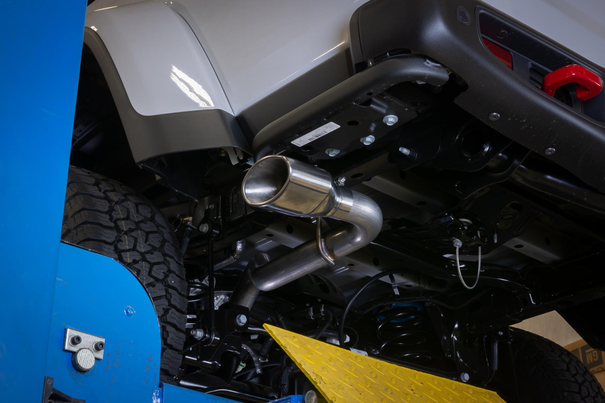 - Single Side Exit Behind Driver Side Rear Tire