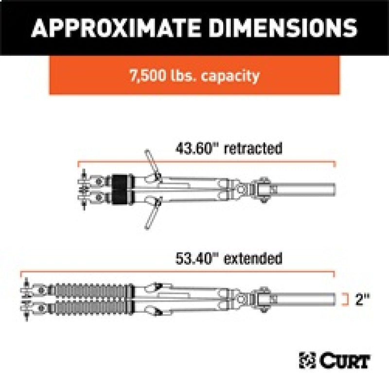 Curt's Rambler Steel RV Tow Bar is a sleek, powerful tow bar that is engineered for smooth non-binding operation, easy portability and dependable towing. The CURT Rambler steel tow bar is constructed with patent-pending, non-binding latches. These allow for easy disconnect on uneven terrain. It also has an automatic, hands-free locking mechanism when connecting the tow arms, making sure you are ready to tow safely. The Rambler has a strong but lightweight design, weighing in at less than 40 pounds. This makes it easier to carry and setup, compared to competitive models. The design is rigorously tested and fully rated for 7,500 pounds. When your dinghy vehicle is disconnected, the Rambler is easy to store. The arms fold to the right or left, together or apart, to help keep them out of the way and unobstructed by a spare tire or other rear RV equipment. To protect the Rambler against the elements, it comes with protective rubber sleeves on each arm and a highly durable textured black powder coat finish. This tow bar fits 2 in. x 2 in. hitch receivers and is compatible with CURT or Blue Ox base plates, sold separately).