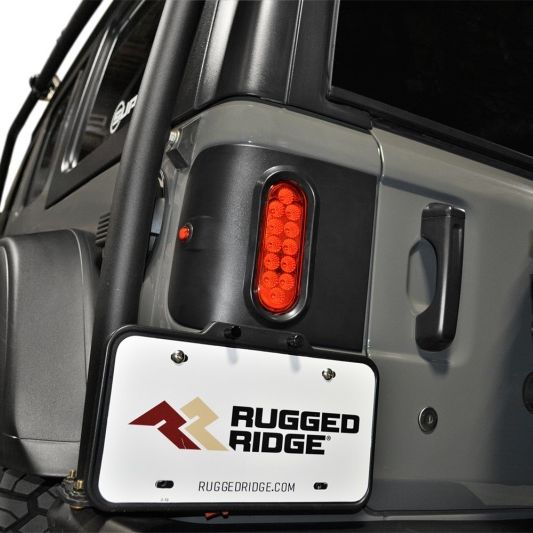 At a place where the trail grows narrow and the terrain becomes even more unforgiving, that's no place to navigate with bulky factory taillights dangling from your rig. That's why keeping things tight and remarkably bright with Flush Mount Taillights from Rugged Ridge is your best bet. We start with a rugged model-specific mounting plate molded from a trail-proven impact-resistant ABS thermoplastic capable of taking whatever abuse the trail is dishing out. The compact And flush-mounted 6 in. oval light assemblies are DOT-approved and provide weatherproof housing for twelve highly efficient LEDs that serve for taillight, brake light, reverse lamp, and turn signal functions, while recessed bullet-style marker lights improve visibility from the side. Since Rugged Ridge engineers their Flush Mount Taillights for your Jeep's particular platform, the wiring harness and connectors are all plug-n-play down to the necessary load resistors to keep things working reliably. And unlike some manufacturers' offerings, with Rugged Ridge, there's no cutting or holes to drill in your Jeep. It's a great way to help ensure your day on the trail doesn't cost you a taillight.