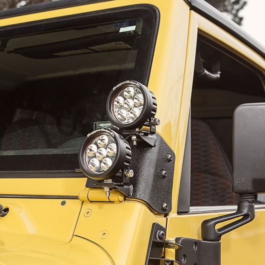 Optimize your off-roading adventure with the best lighting solutions on the market. Designed to accommodate a variety of auxiliary off-road lights, Rugged Ridge designed this new light mount to allow you to place lights in positions that yield the most visibility on the trail. This dual A-pillar light mount is constructed from heavy-duty steel and is easily attached to the lower windshield mount using existing factory mounting holes. No drilling or cutting is required for installation.