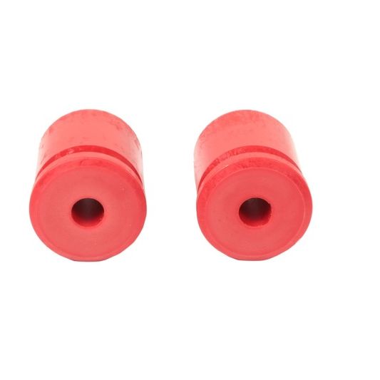 Replace your rubber OE rear bump stops with these red polyurethane ones from Rugged Ridge. There has been an ongoing debate about rubber vs. polyurethane as to what is better, It truly depends on how you are using your Jeep. In most cases polyurethane outperforms its rubber counterparts in replacement of bushings and mounts. The products will last longer standing up to road debris, chemicals, oils, compression, and load. They will perform better by removing additional sloppiness in suspension performance due to worn, damaged, or missing bushings. It is however, a little stiffer than rubber.