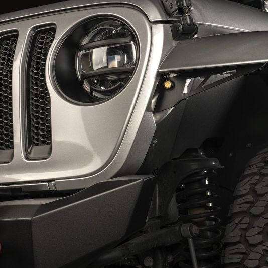 Modifying JL flares for off-road is easy and the look is nothing short of heroic with the Rugged Ridge Fender Chop Bracket Kit. By removing the bulky factory fender light assembly, you'll have greater clearance for oversized tires with nothing to get between you and that next obstacle. Sturdy steel chop brackets install easily and lend support for the front of the factory fender flare, adding a fearless, aggressive new look. And since Jeeps don't live solely off-road, we've built-in bullet-style side marker and turn signal lights to ensure safe on-road operation too. Brackets come in pairs, for both Rubicon and Sahara models, and feature a matte black powder coat finish that blends seamlessly with the factory flare finish. All installation hardware and instructions are included for a hassle-free install in record time.