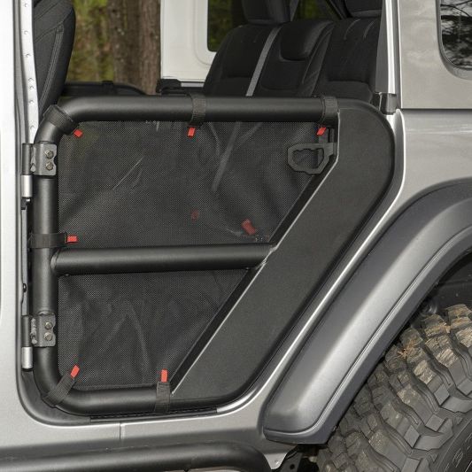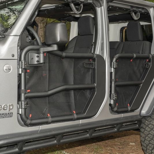 Rugged Ridge Fortis Tube Door Covers give JL owners the ability to enjoy the open air element of their Rugged Ridge Fortis Tube Doors while providing a higher level of containment for the passenger area and its contents. Nylon-reinforced mesh construction offers a strudy barrier that installs quickly and easily. Highly functional and great-looking...you'll wonder how you ever did without them! Sold in pairs.