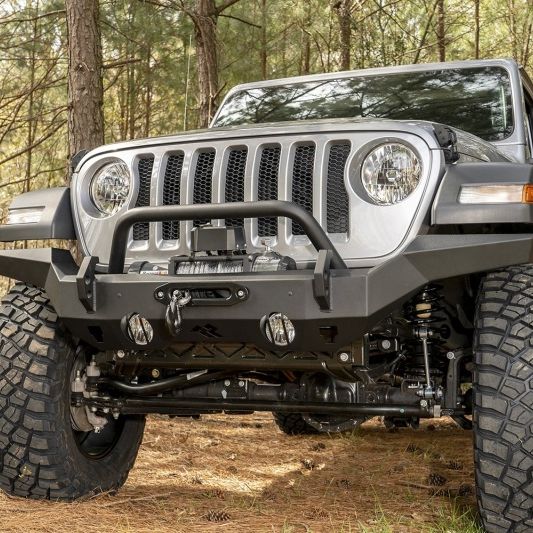 Make sure that your Jeep is as tough as any trail you're likely to tackle. Plastic bumpers might look good, but run into anything more than bug guts and you'll see why you need the strength of steel on your rig. That's why we recommend you keep the flimsy plastic in the picnic basket, not on your Jeep. Rugged Ridge HD Series Bumpers are trail-tested, proven designs that pack a serious punch. Whether you prefer the narrow, agile angles of our HD Stubby Front Bumper or the burly look of the Full-Width, you will love the aggressive off-road presence they provide. Engineered to mount most any aftermarket Winch for greater versatility and well-equipped to perform in the clutch with built-in jack lifting points at every corner and massive recovery hooks, each one dual-drilled to work with both ¾ and 7/8- in. shackles (shackles not included). We've even designed an HD Rear Bumper to go out back, for a highly-functional, total bumper package. Add a beautiful satin black powder coat finish and the confidence of our Limited 5 Year Warranty and the choice becomes clear. Rugged Ridge HD Bumpers are the best-built bumpers in their price class…or any class.