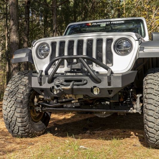 Make sure that your Jeep is as tough as any trail you're likely to tackle. Plastic bumpers might look good, but run into anything more than bug guts and you'll see why you need the strength of steel on your rig. That's why we recommend you keep the flimsy plastic in the picnic basket, not on your Jeep. Rugged Ridge HD Series Bumpers are trail-tested, proven designs that pack a serious punch. Whether you prefer the narrow, agile angles of our HD Stubby Front Bumper or the burly look of the Full-Width, you will love the aggressive off-road presence they provide. Engineered to mount most any aftermarket Winch for greater versatility and well-equipped to perform in the clutch with built-in jack lifting points at every corner and massive recovery hooks, each one dual-drilled to work with both ¾ and 7/8- in. shackles (shackles not included). We've even designed an HD Rear Bumper to go out back, for a highly-functional, total bumper package. Add a beautiful satin black powder coat finish and the confidence of our Limited 5 Year Warranty and the choice becomes clear. Rugged Ridge HD Bumpers are the best-built bumpers in their price class…or any class.