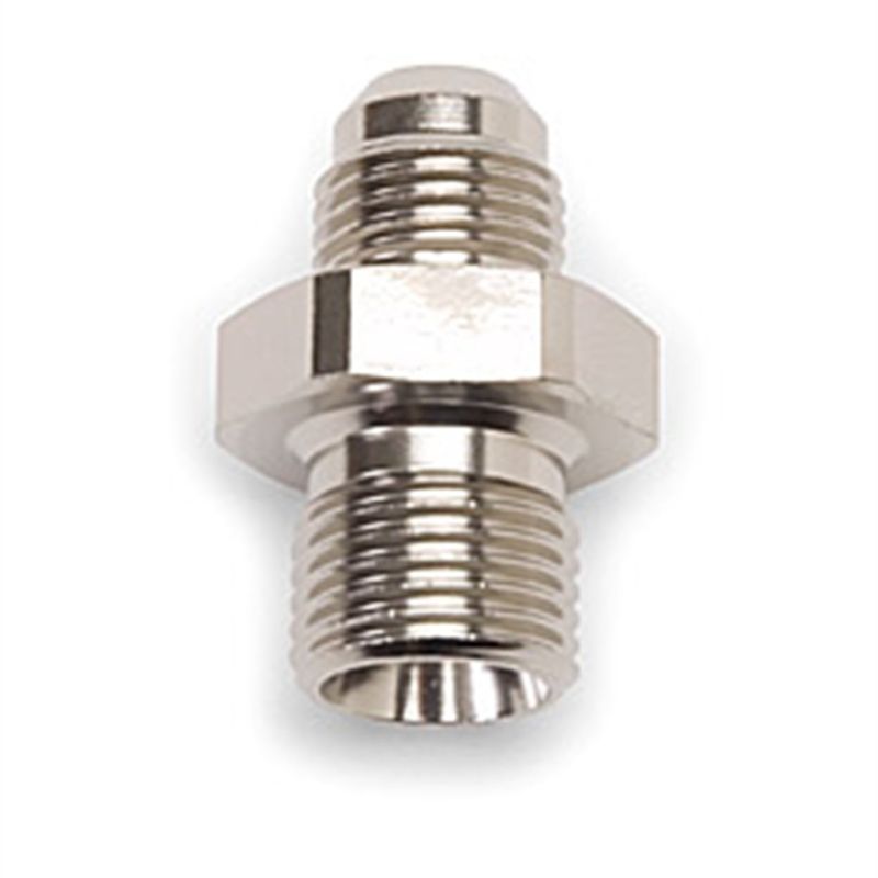 Russell's wide variety of lightweight aluminum adapter fittings allow for the connection of Russell hose ends to almost any component. Adapters are offered in standard thread, metric thread and pipe thread to fit most popular oil pumps, fuel pumps, fuel filters plus a variety of other common components. To compliment the looks of the hose installation, three finishes are available - ultra-bright Endura, traditional blue anodized or our new black anodized fittings.