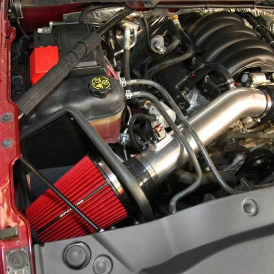 Spectre air intake systems are designed to get more horsepower and torque from your vehicle while working to protect your engine from harmful debris. This air intake system comes with a washable, reusable low restriction Spectre High Performance Racing (HPR) air filter, polished aluminum intake tubing and a black powder coated 2 -piece heat shield to help prevent heated engine air from entering the intake inlet. Spectre air intakes come with velocity stack, stainless steel clamps, couplers, and all necessary hardware for an OE fit and finish. MAFS mounts directly on the intake tube.