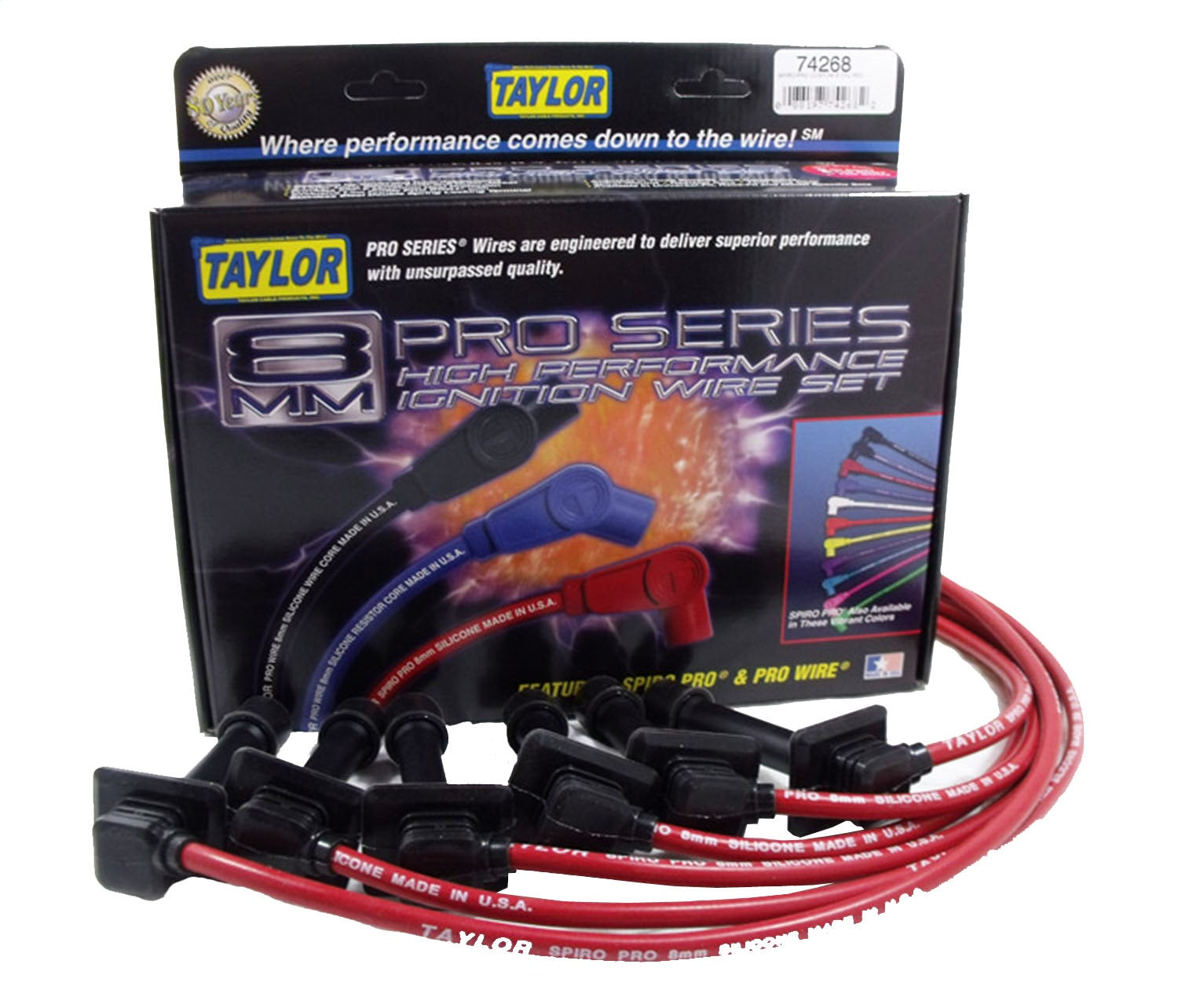 | Description_MKT | Spiro Pro 8mm wire is the top choice of Racers and Enthusiasts due to its affordable value and overall high performance features. Offers heat protection to 600º F. Provides 65,000 volts of dielectric strength. |