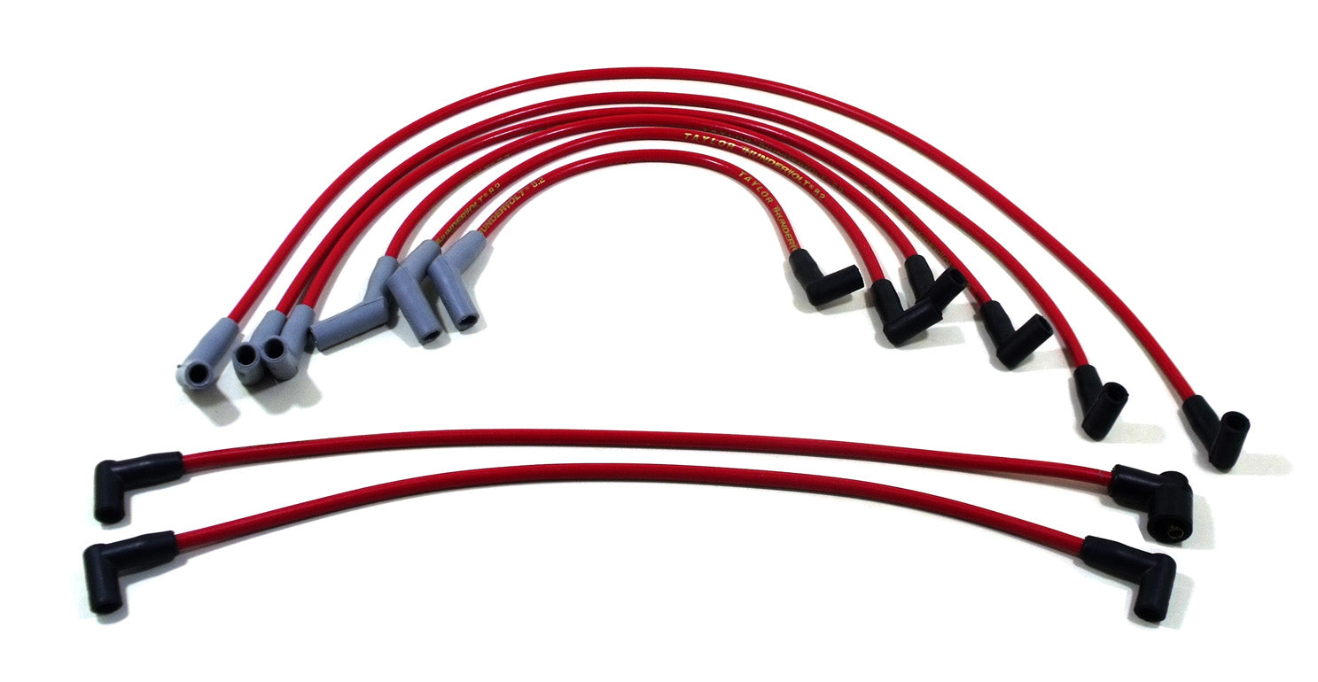 Taylor's ThunderVolt 8.2mm outperforms the competition in both looks and performance… all at an affordable price. This ignition wire is a must if you are using a multiple spark discharge ignition system. Features an exclusive two layer 100% Zimplex silicone outer jacket that provides heat resistant protection up to 600º F. Features 100% silicone spark plug boots and vibration proof double spring locking plug terminals.