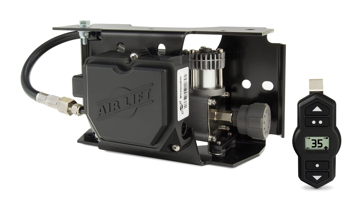 | Description_MKT | WirelessOne puts the power in your hands. Whether it is with the easy-to-read handheld controller or the free mobile app, you can inflate or deflate your air spring system with one touch. WirelessOne is a single-path system, meaning both air springs will be inflated or deflated to the same pressure. This is ideal for vehicles carrying loads that are equally distributed left-to-right. The controller and app are both programmable with user-defined presets, so WirelessOne can remember your frequently used pressures. Purchasing the WirelessOne system with EZ Mount gives you everything you need for the fastest, easiest installation possible. EZ Mount packages the manifold and upgraded, heavy-duty compressor into one convenient, pre-assembled and factory-tested bracket, giving you everything you need to have full control of your air springs in no time at all. |
